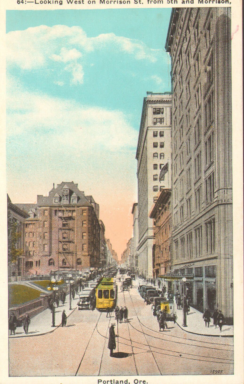 Building/location:Looking West on Morrison Street from 5th and Morrison Subject Matter:Street Image process:Lithograph Architect: Building Description: List of Drawings in set:
