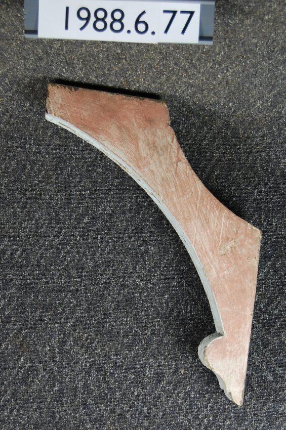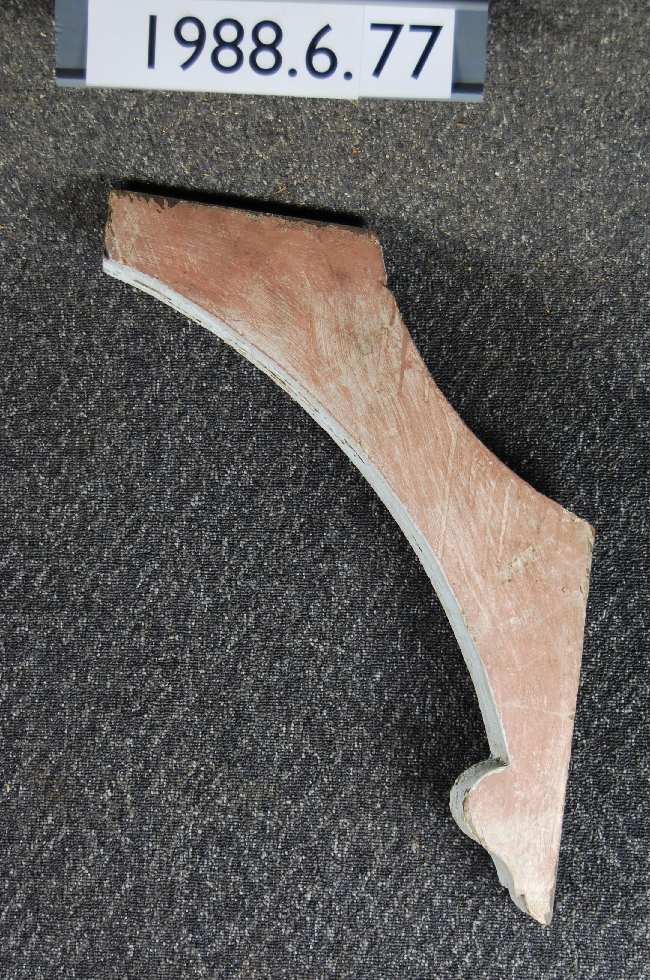 Wood bracket. Curved sides. Beaded / fluted front. Painted light blue and brown. Inscriptions or Markings: Manufacturer: Place of Manufacturer: Design motif: Style: Finish: Painted