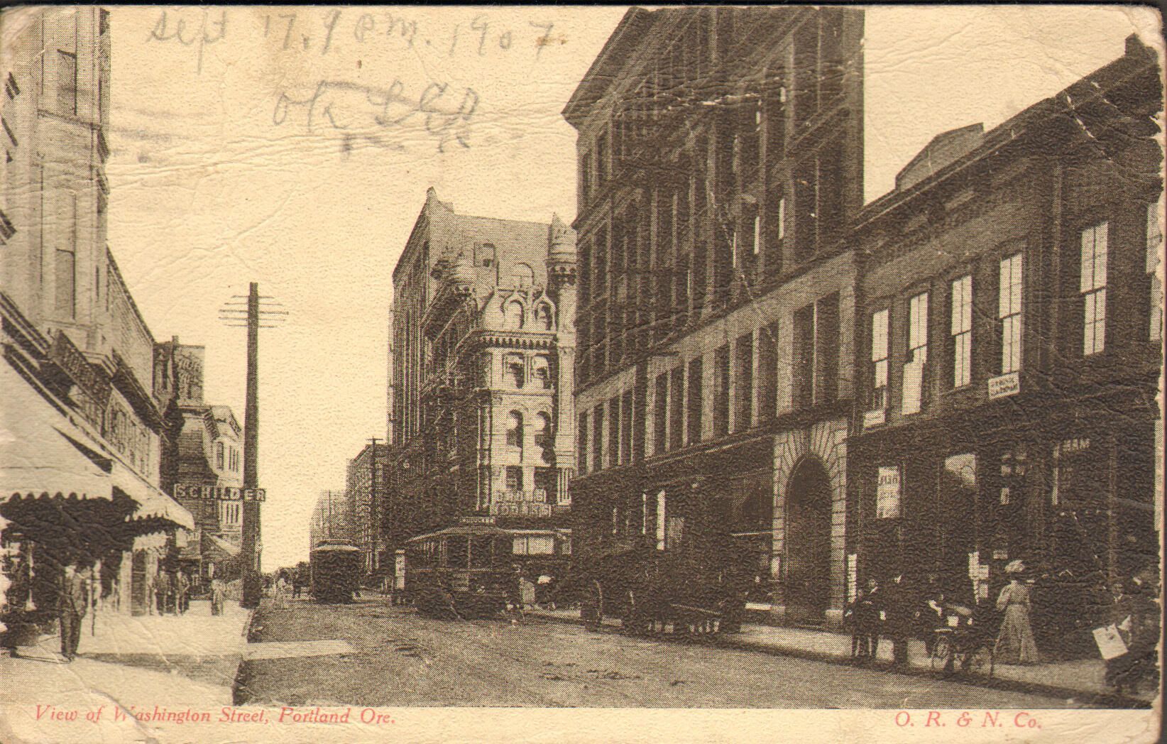 Building/location: Washington Street looking East Subject Matter:Street Image process:B&W Lithograph Architect: Building Description: List of Drawings in set: