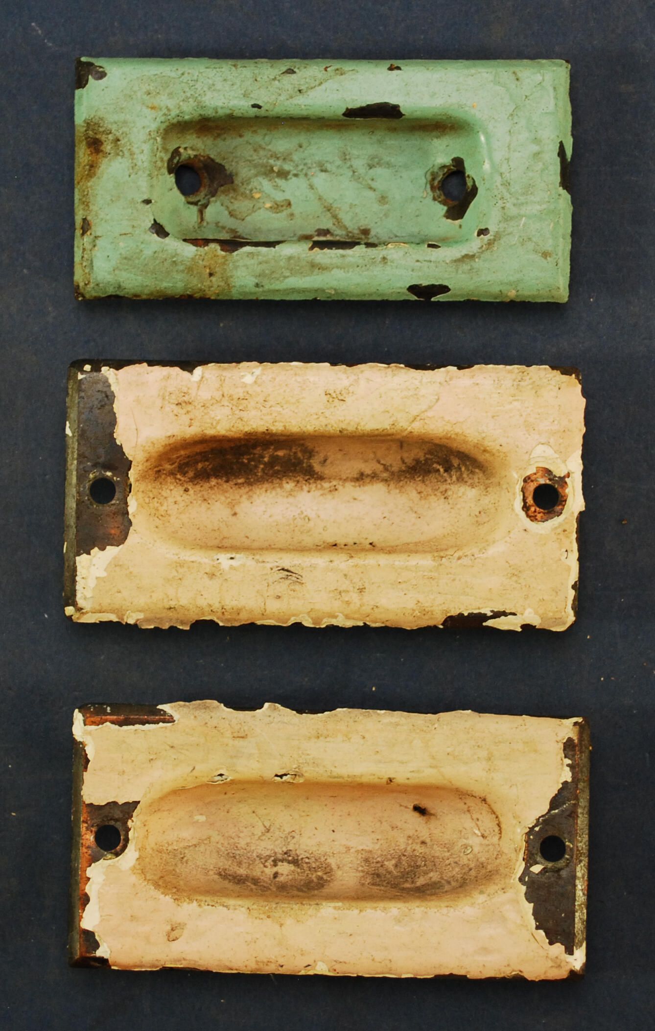 Design Name: Manufacturer: Unknown Style: Material: Steel Manufacturing Method: Wrought / Stamped Surface Finish: Plated VDA Classification: VDA Number: Shape: Patent Specifics: Lock Type (If Applicable): Inscription/Makers Mark: Inscription Text: Comments: Flush lift, two match.