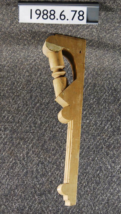 Wood bracket. Single turned spindle near top. Convex moldings applied to lower front. Remnants of paint. Partially stripped. Inscriptions or Markings: Manufacturer: Place of Manufacturer: Design motif: Style: Finish: Painted / partially stripped