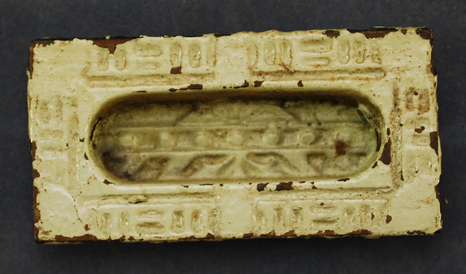 Design Name: Manufacturer: Unknown Style: Aesthetic Material: Iron Manufacturing Method: Cast Surface Finish: Japanned VDA Classification: VDA Number: Shape: Patent Specifics: Lock Type (If Applicable): Inscription/Makers Mark: Inscription Text: Comments: Flush lift, later paint.