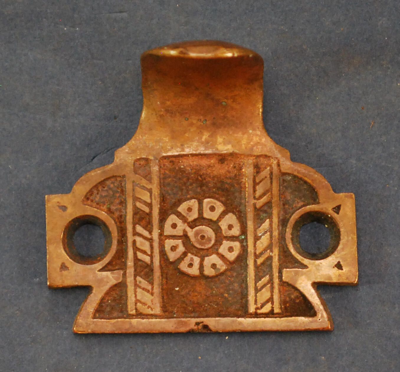 Design Name: Manufacturer: Unknown Style: Aesthetic Material: Bronze Manufacturing Method: Cast Surface Finish: Aged / Unpolished VDA Classification: VDA Number: Shape: Patent Specifics: Lock Type (If Applicable): Inscription/Makers Mark: Inscription Text: Comments: Finger lift.