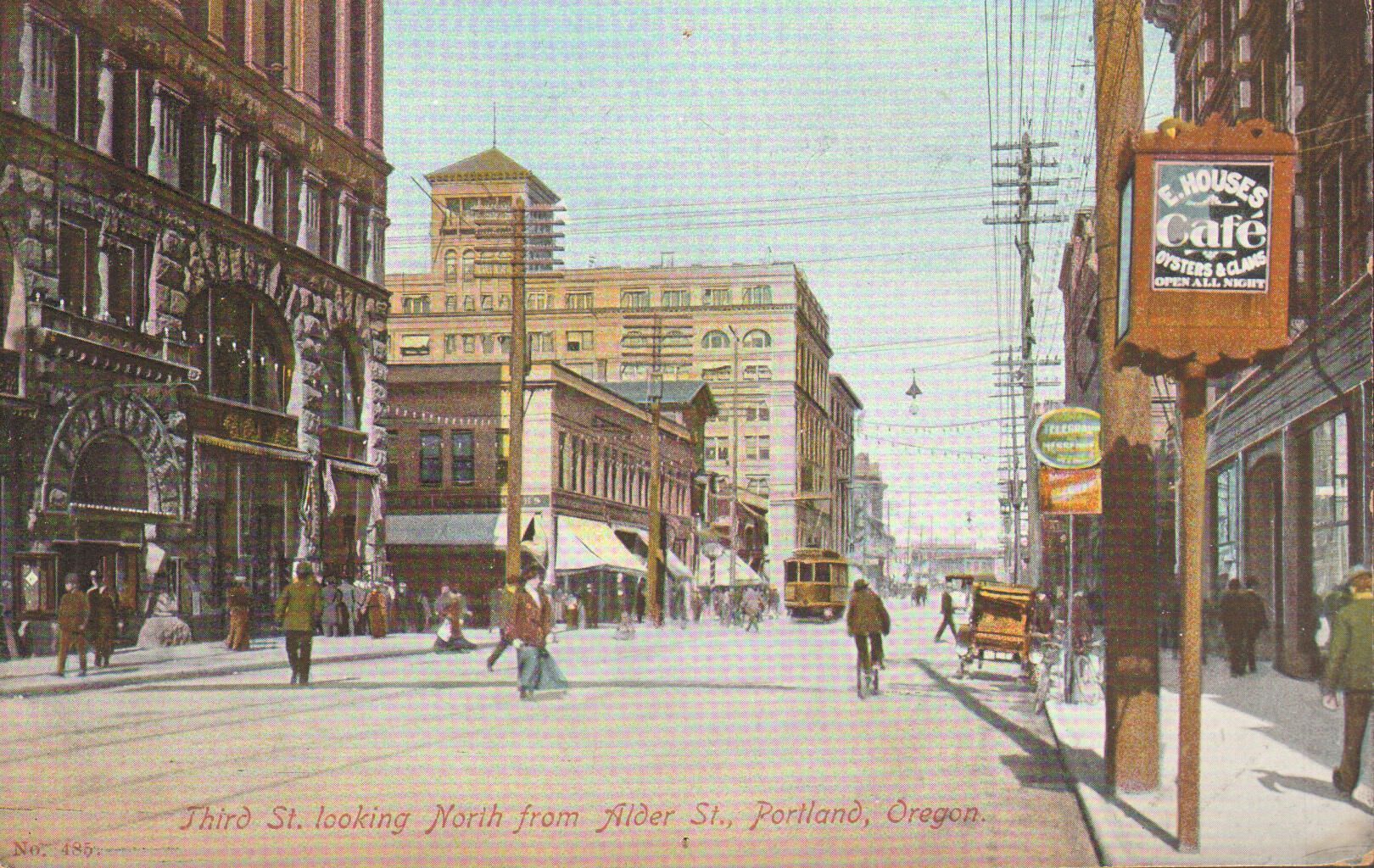 Building/location:Third Street looking North from Alder St. Subject Matter:Street Image process:Lithograph Architect: Building Description: List of Drawings in set: