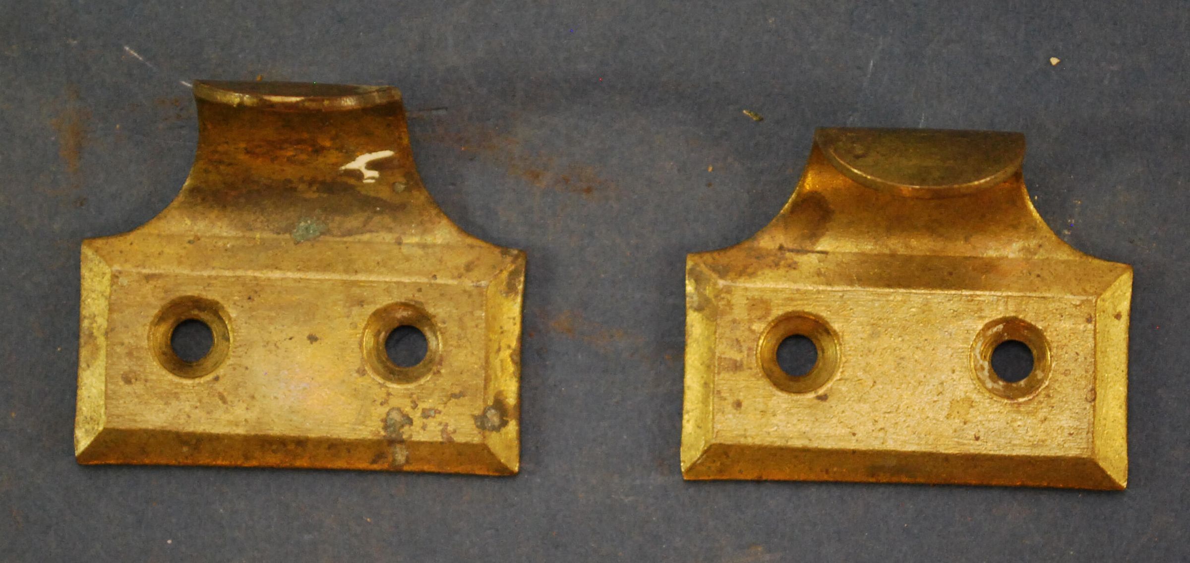 Design Name: Manufacturer: Unknown Style: Material: Brass Manufacturing Method: Wrought / Stamped Surface Finish: Aged / Unpolished VDA Classification: VDA Number: Shape: Patent Specifics: Lock Type (If Applicable): Inscription/Makers Mark: Inscription Text: Comments: Finger lift.