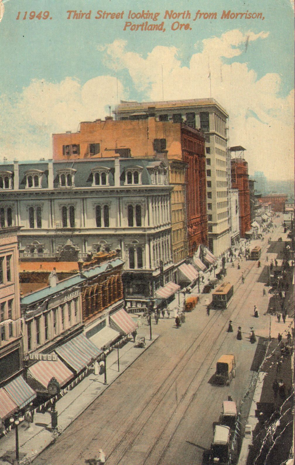 Building/location:Third Street looking North from Morrison Subject Matter:Street Image process:Lithograph Architect: Building Description: List of Drawings in set: