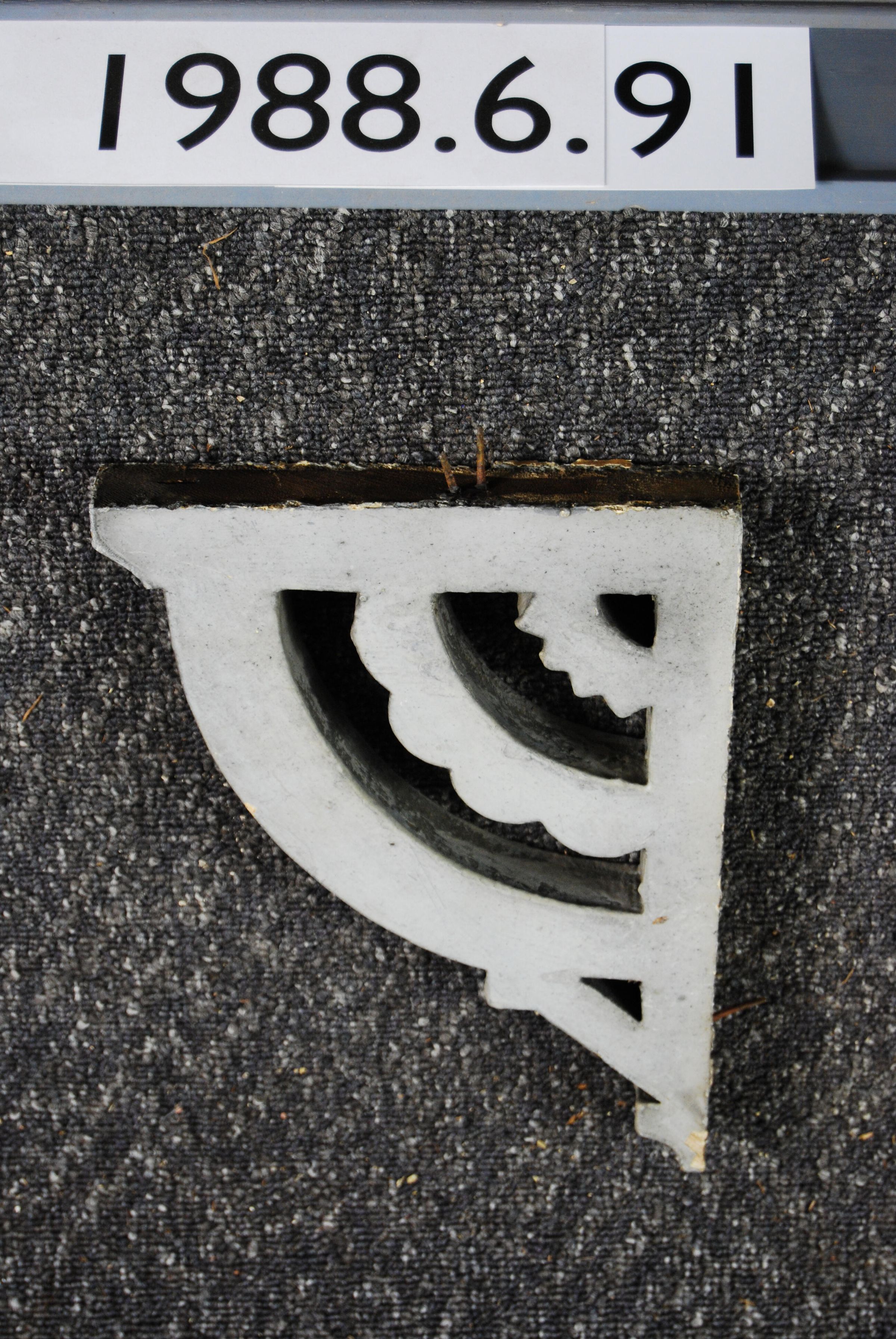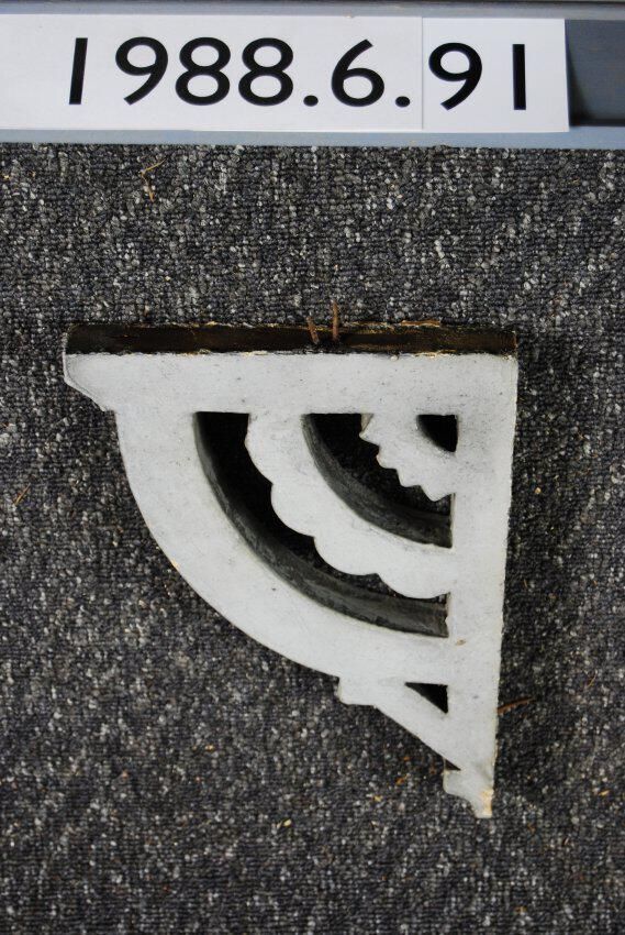 Wood bracket. Fret brackets. Arched semi-circular design. Painted grey. Inscriptions or Markings: Manufacturer: Place of Manufacturer: Design motif: Style: Finish: Painted