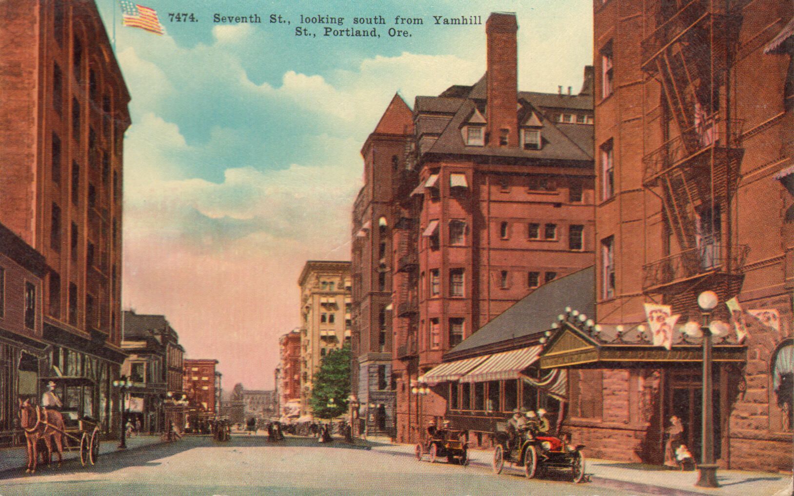 Building/location:Seventh St., looking south from Yamhill Subject Matter:Street Image processlithograph Architect: Building Description: List of Drawings in set: