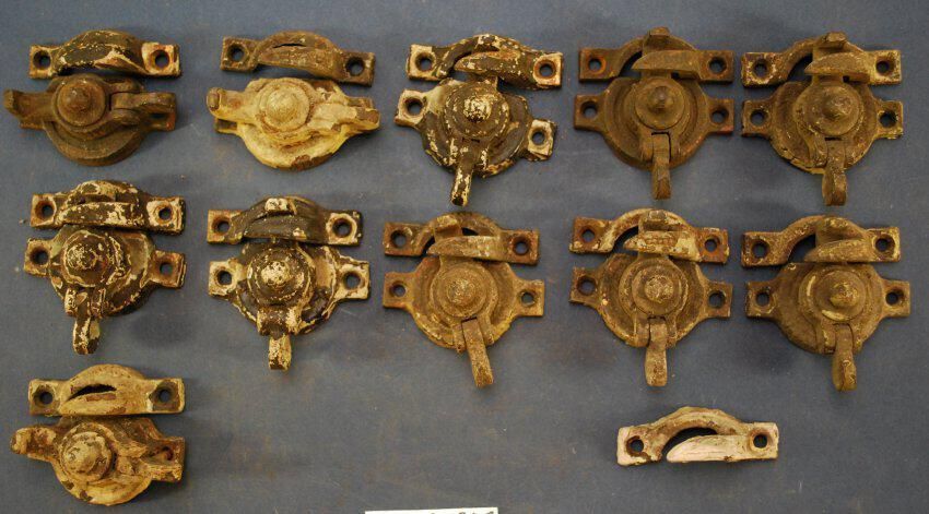 Comments: 17 locks, 17 catches; of these, six locks are bronze, eleven are cast iron. All with later paint.Lexicon