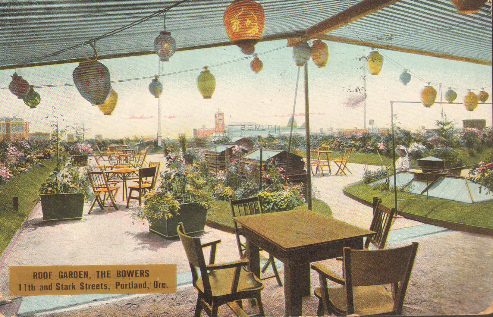Building/location:The Bowers, roof garden/ 11th and Stark Streets Subject Matter:Restaurants Image process:lithograph Architect: Building Description: List of Drawings in set: