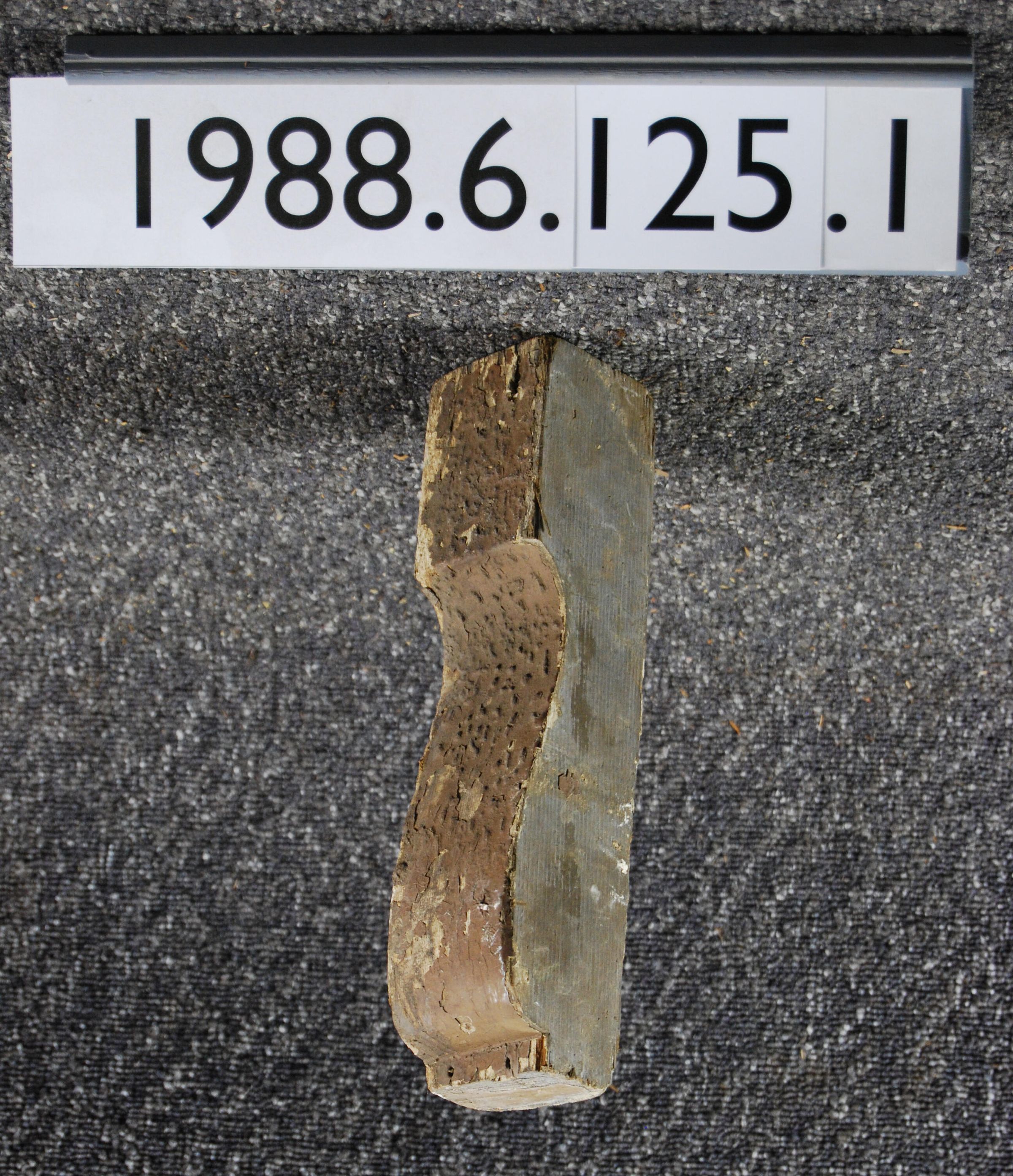 Wood bracket. Compound contour. Painted brown / yellow. Inscriptions or Markings: Manufacturer: Place of Manufacturer: Design motif: Style: Finish: Painted