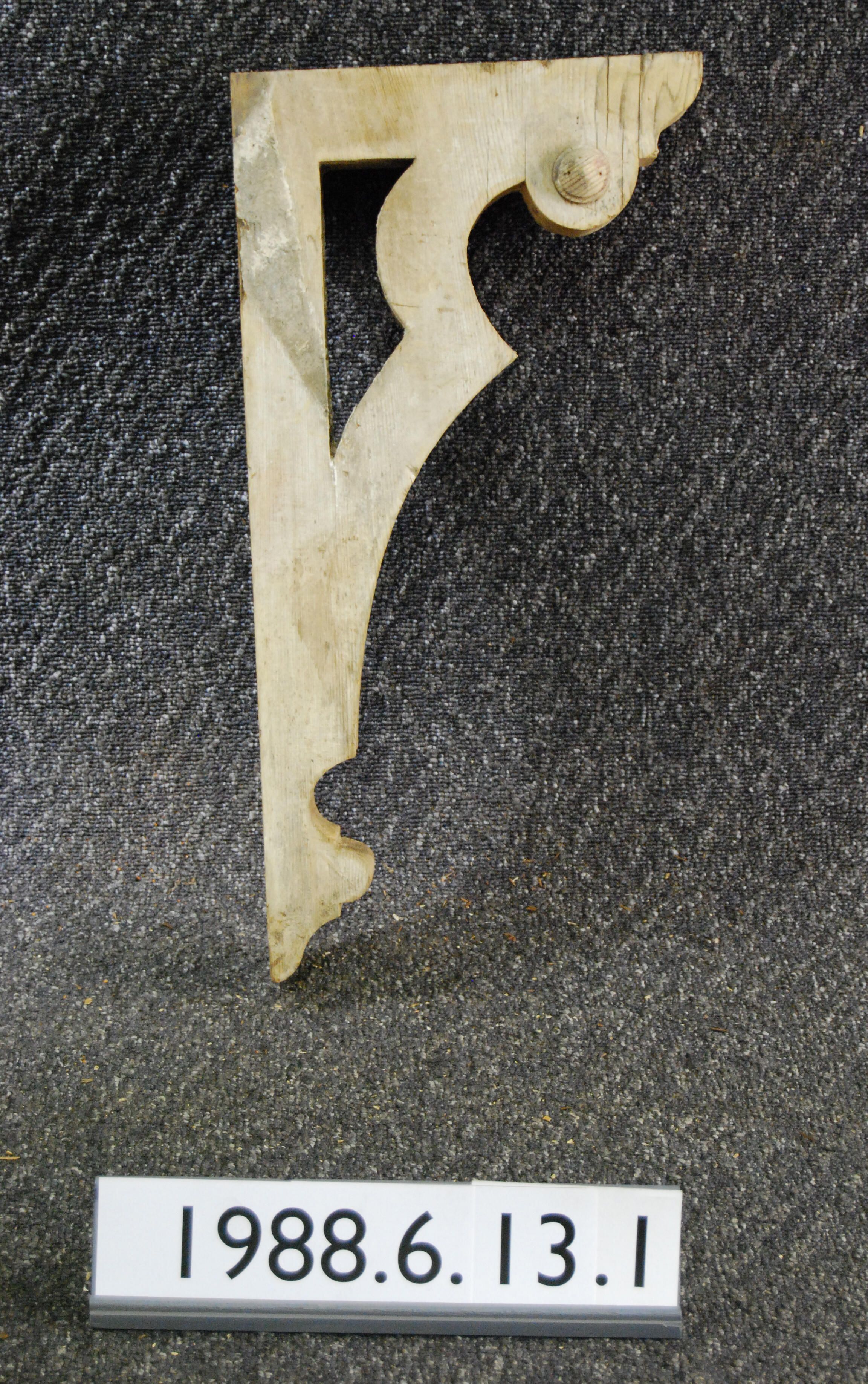 Wood bracket. Compound contour. Painted yellow. Inscriptions or Markings: Manufacturer: Place of Manufacturer: Design motif: Style: Finish: Painted