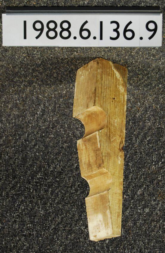 Wood bracket. Coved indents. Stripped of paint. Inscriptions or Markings: Manufacturer: Place of Manufacturer: Design motif: Style: Finish: Stripped