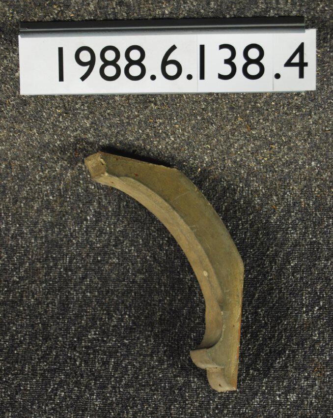 Wood bracket. Curved. Painted grey. Inscriptions or Markings: Manufacturer: Place of Manufacturer: Design motif: Style: Finish: Painted