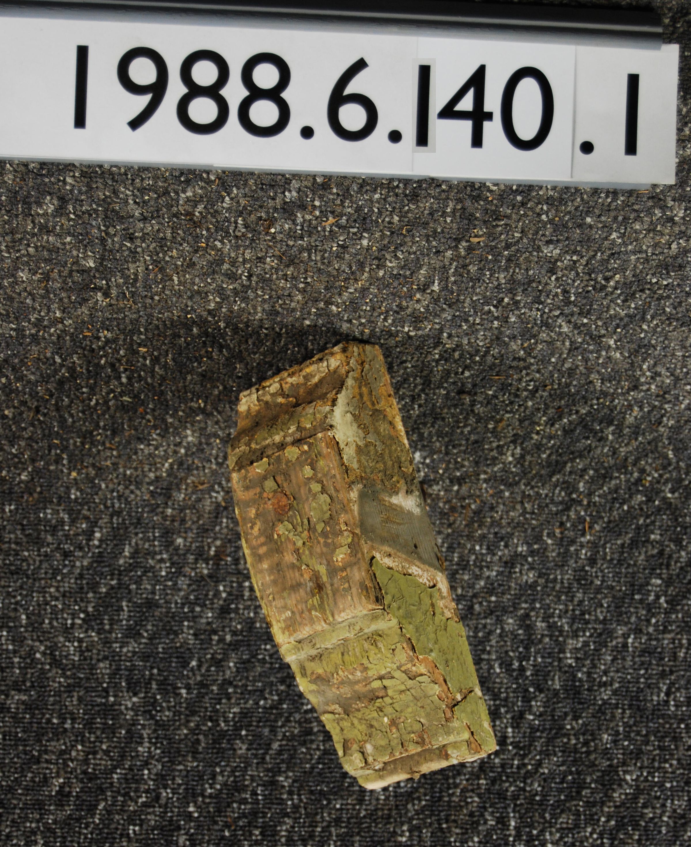 Wood bracket. Compound contour. Cut from block. Paint remnants of various colors.. Inscriptions or Markings: Manufacturer: Place of Manufacturer: Design motif: Style: Finish: Painted