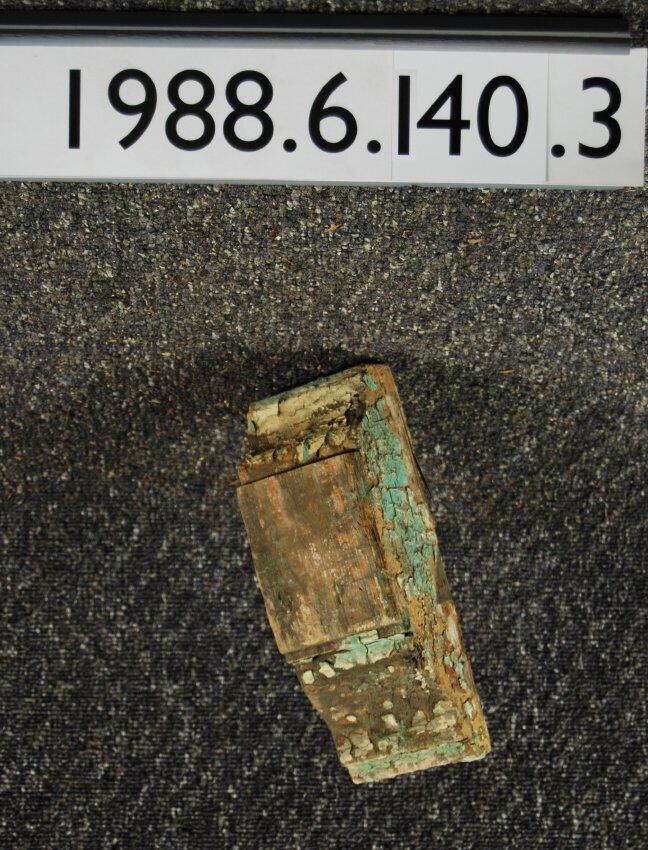 Wood bracket. Compound contour. Cut from block. Paint remnants of various colors.. Inscriptions or Markings: Manufacturer: Place of Manufacturer: Design motif: Style: Finish: Painted