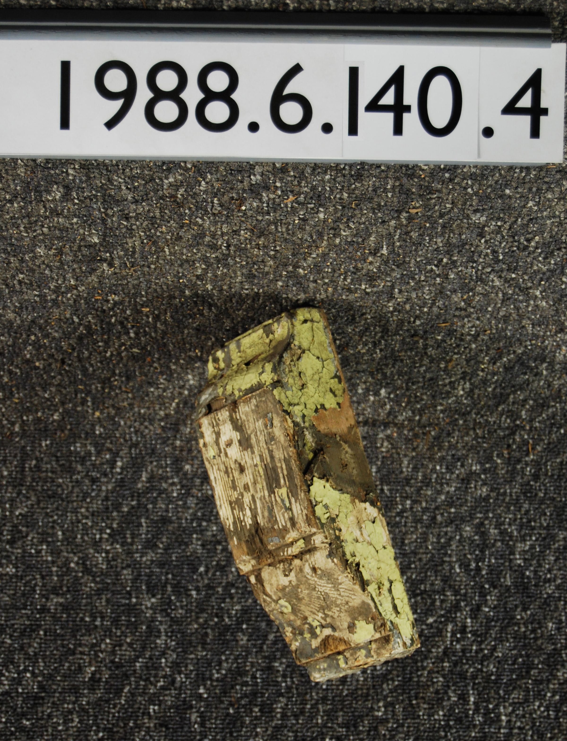 Wood bracket. Compound contour. Cut from block. Paint remnants of various colors.. Inscriptions or Markings: Manufacturer: Place of Manufacturer: Design motif: Style: Finish: Painted