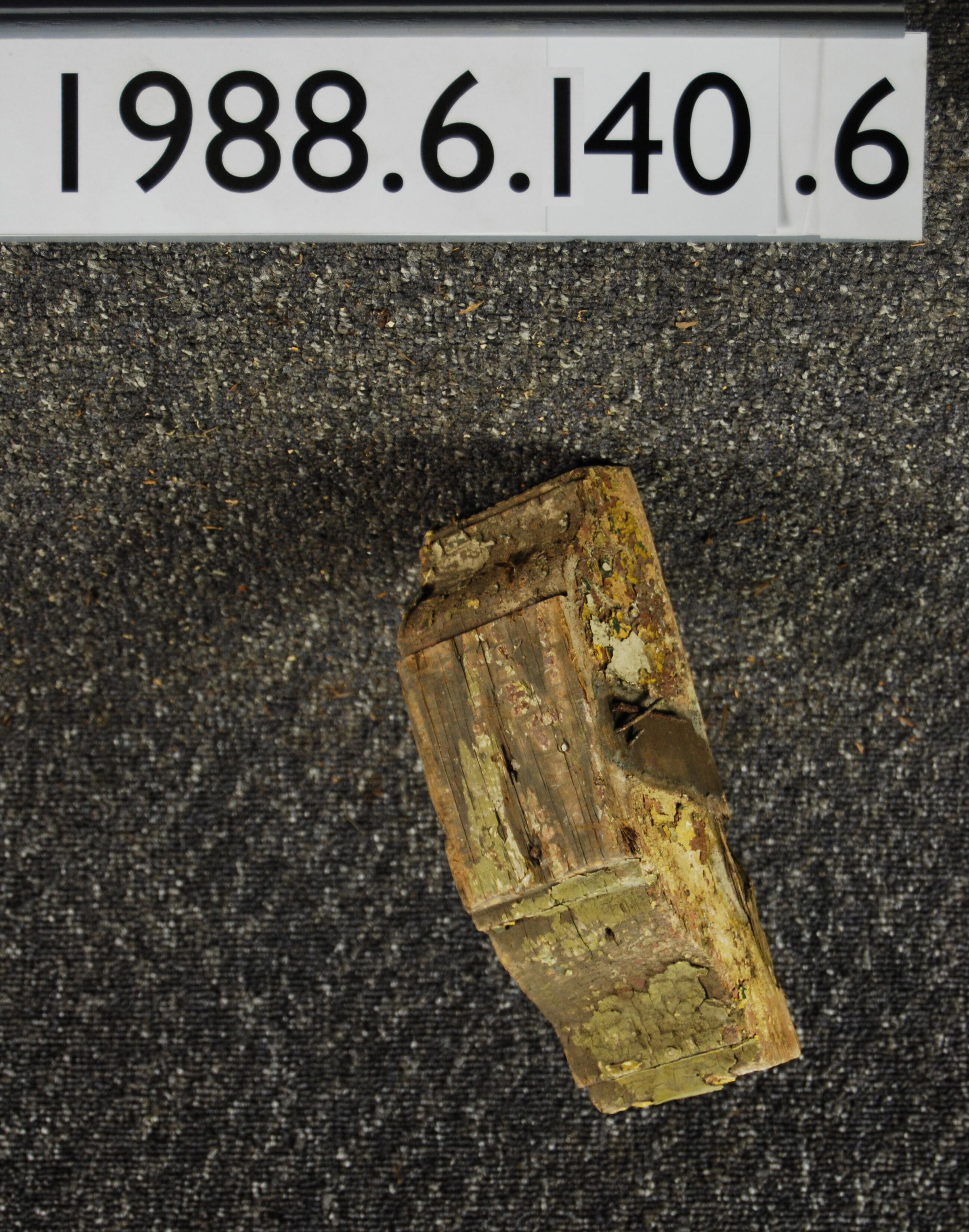 Wood bracket. Compound contour. Cut from block. Paint remnants of various colors.. Inscriptions or Markings: Manufacturer: Place of Manufacturer: Design motif: Style: Finish: Painted
