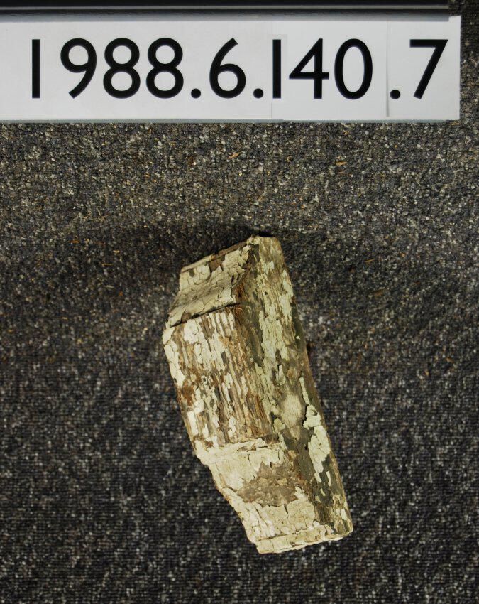 Wood bracket. Compound contour. Cut from block. Paint remnants of various colors.. Inscriptions or Markings: Manufacturer: Place of Manufacturer: Design motif: Style: Finish: Painted