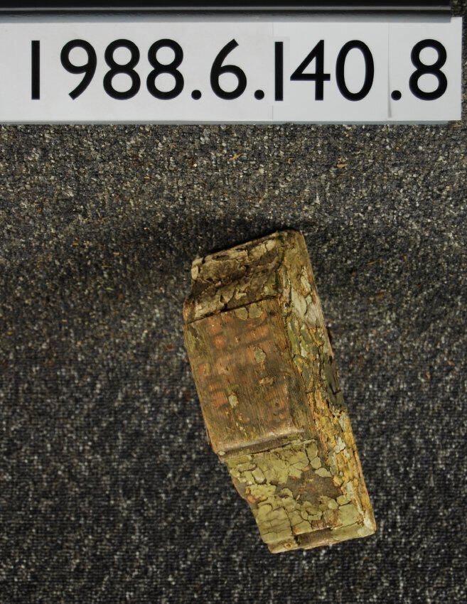 Wood bracket. Compound contour. Cut from block. Paint remnants of various colors.. Inscriptions or Markings: Manufacturer: Place of Manufacturer: Design motif: Style: Finish: Painted