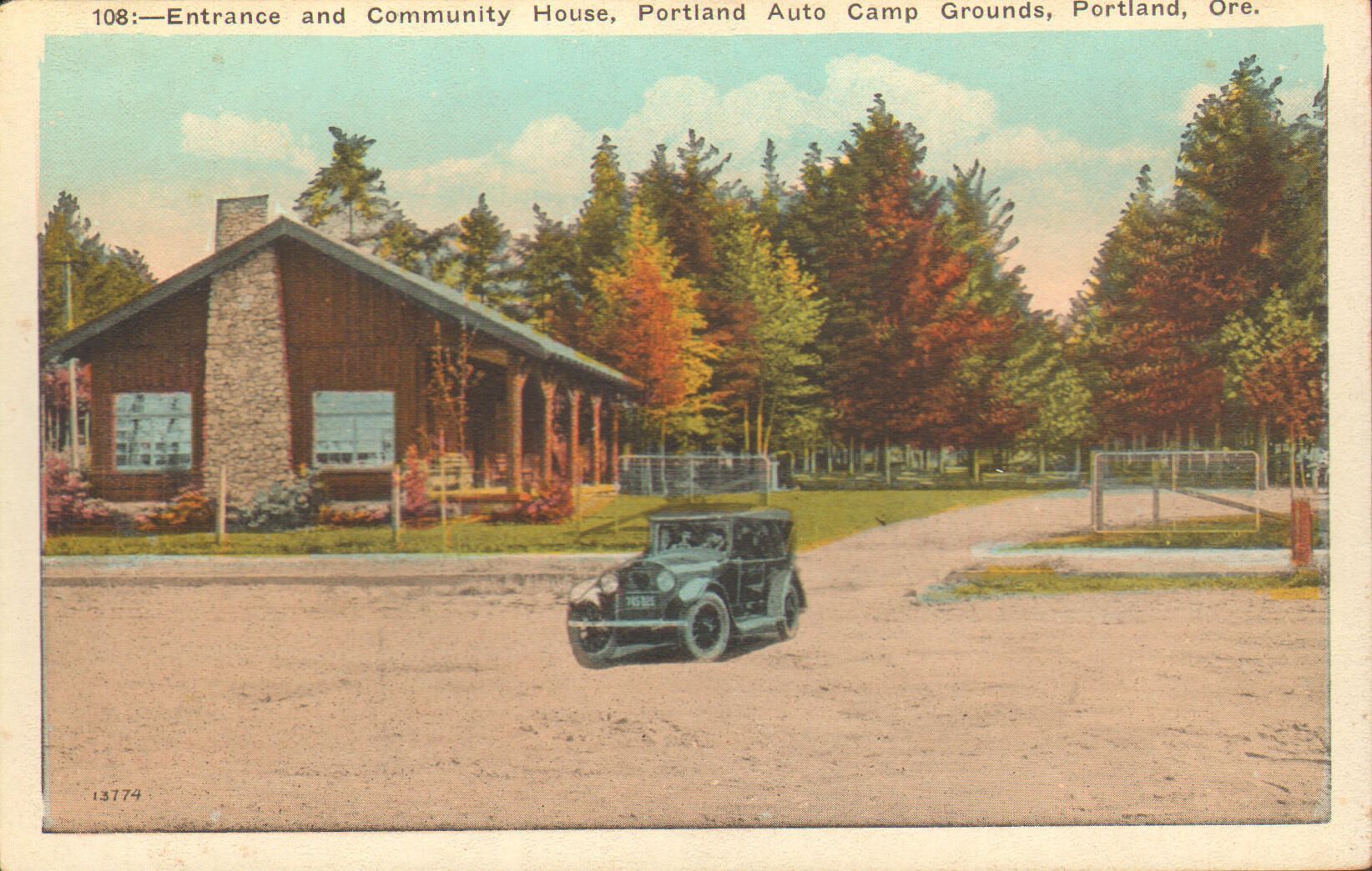Building/location:Entrance and Community House, Portland Auto Camp Grounds