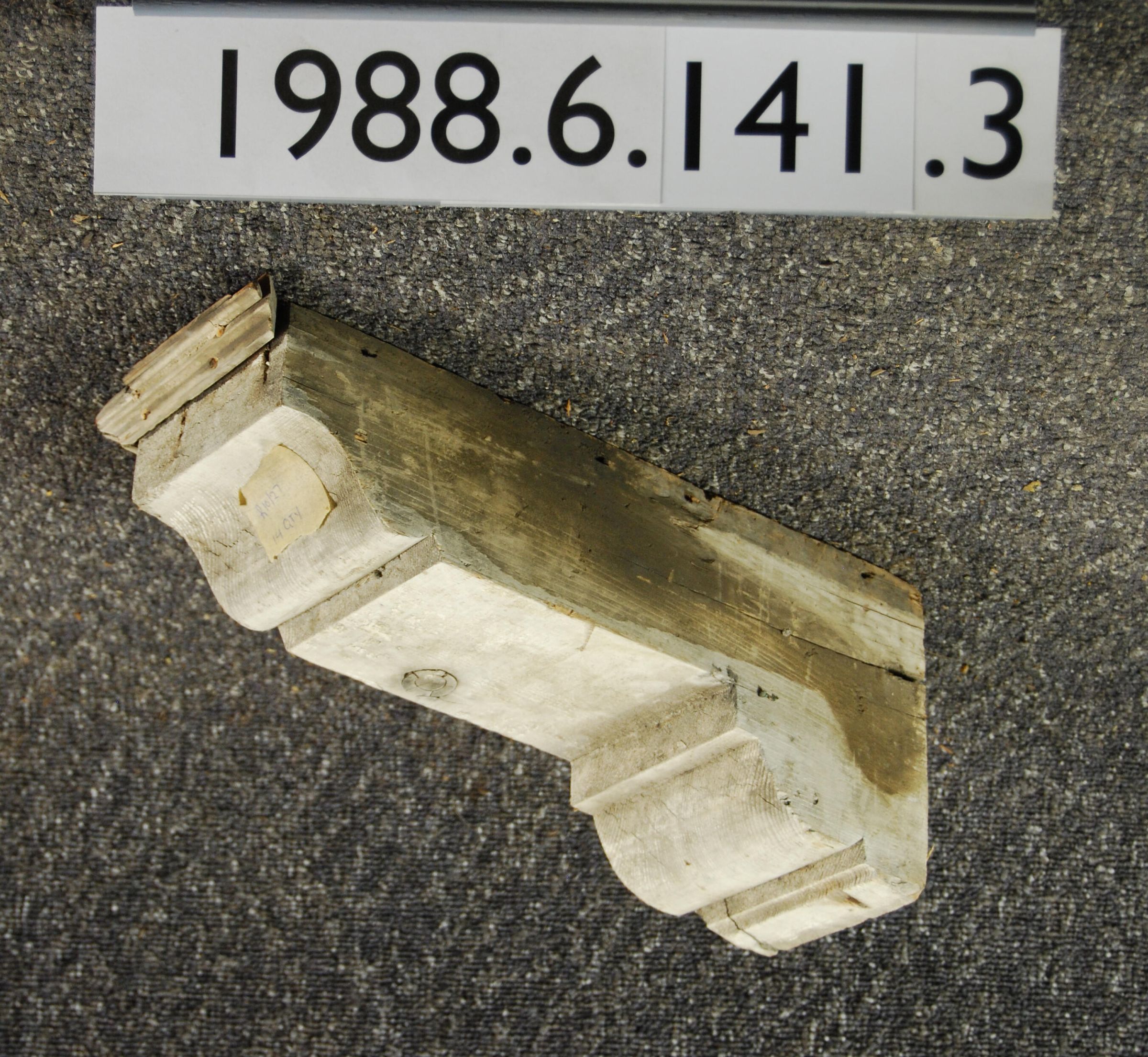 Wood bracket. Horizontal-positioned. Block-cut. Molding loose - missing from one side. Inscriptions or Markings: Manufacturer: Place of Manufacturer: Design motif: Style: Finish: Painted