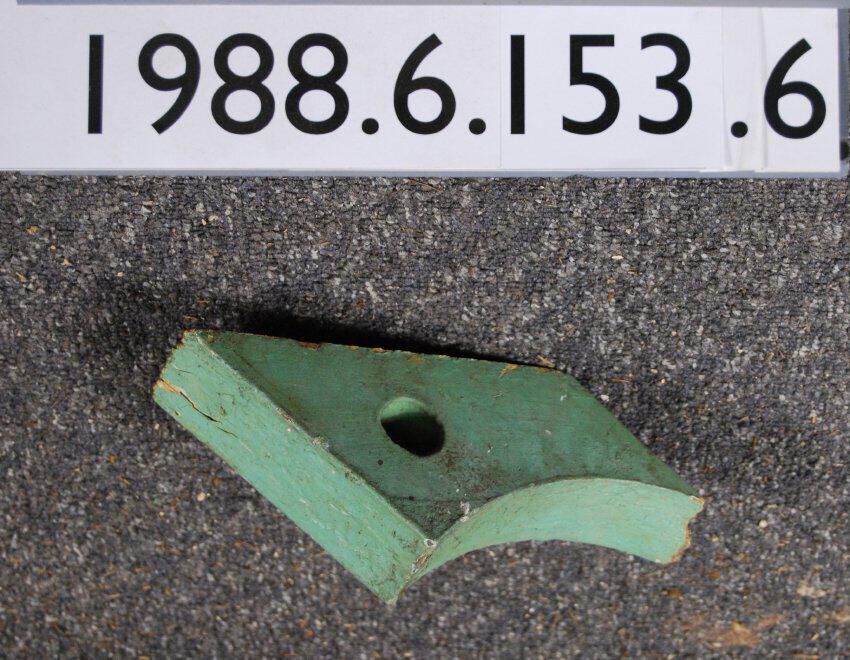 Wood bracket. Fragment. Painted green. Inscriptions or Markings: Manufacturer: Place of Manufacturer: Design motif: Style: Finish: Painted