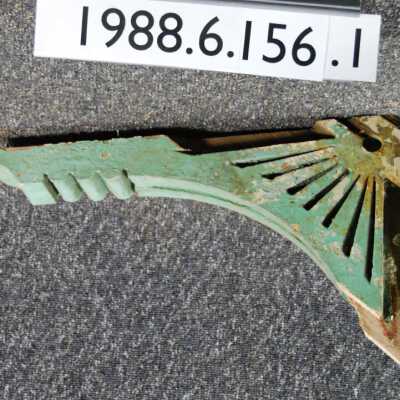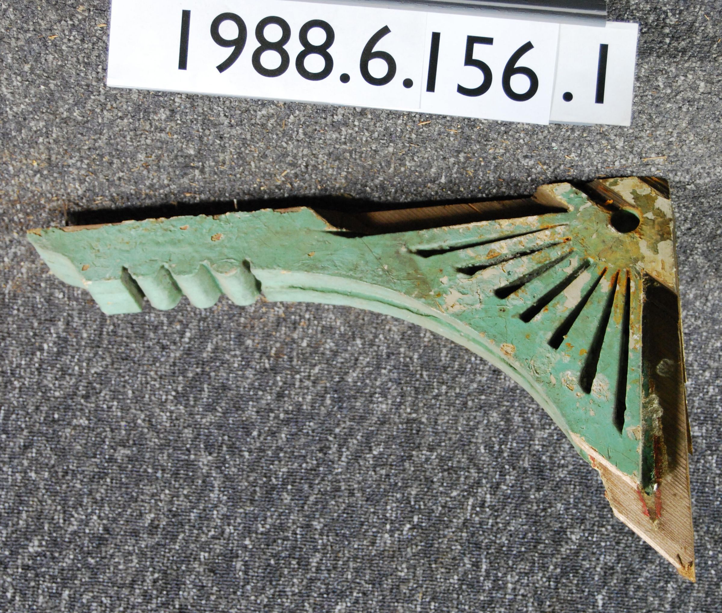 Wood bracket. Sunburst motif. Painted green. Inscriptions or Markings: Manufacturer: Place of Manufacturer: Design motif: Style: Finish: Painted