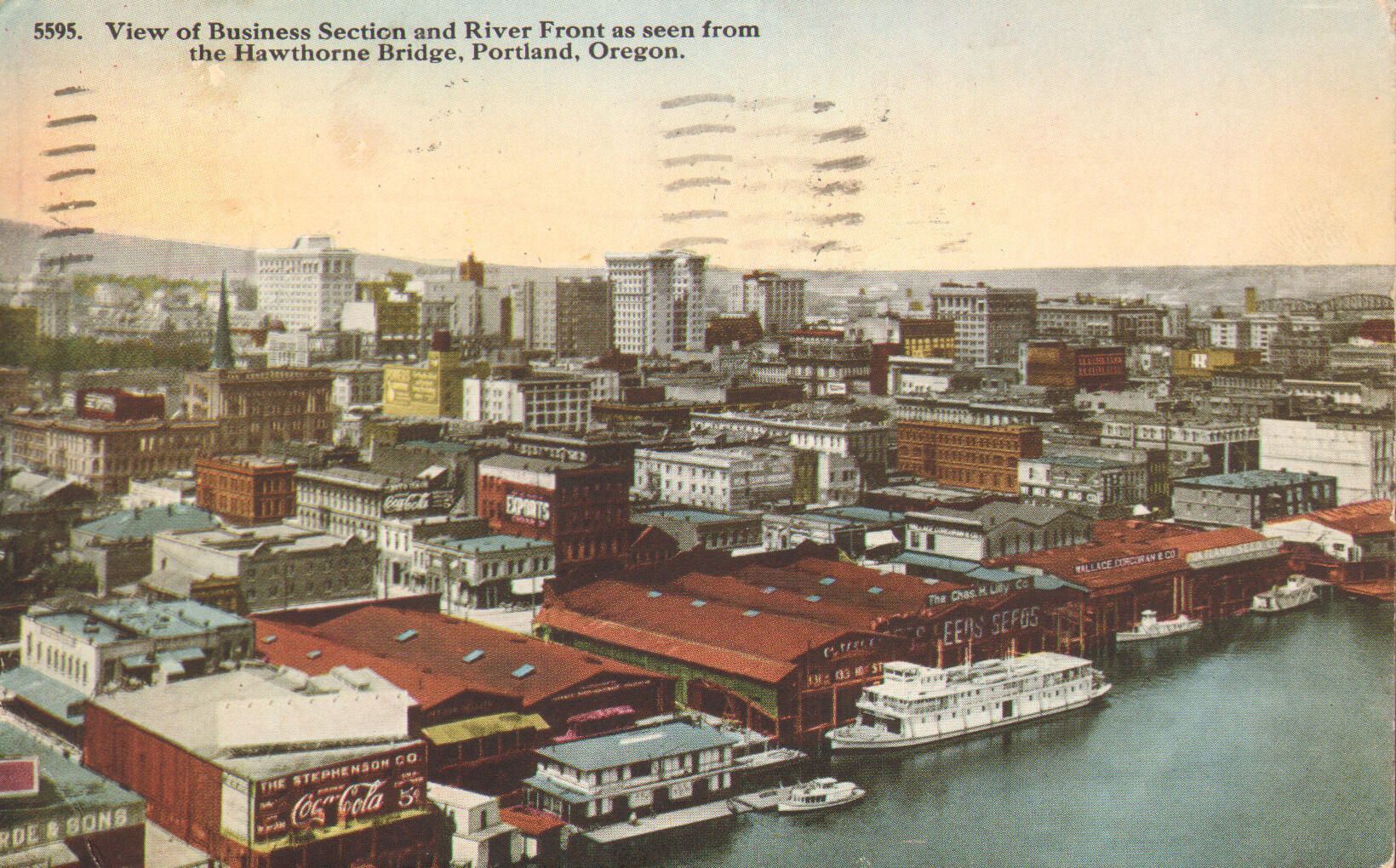 Building/location: VIew of Business Section and River Front as seen from the Hawthorne Bridge