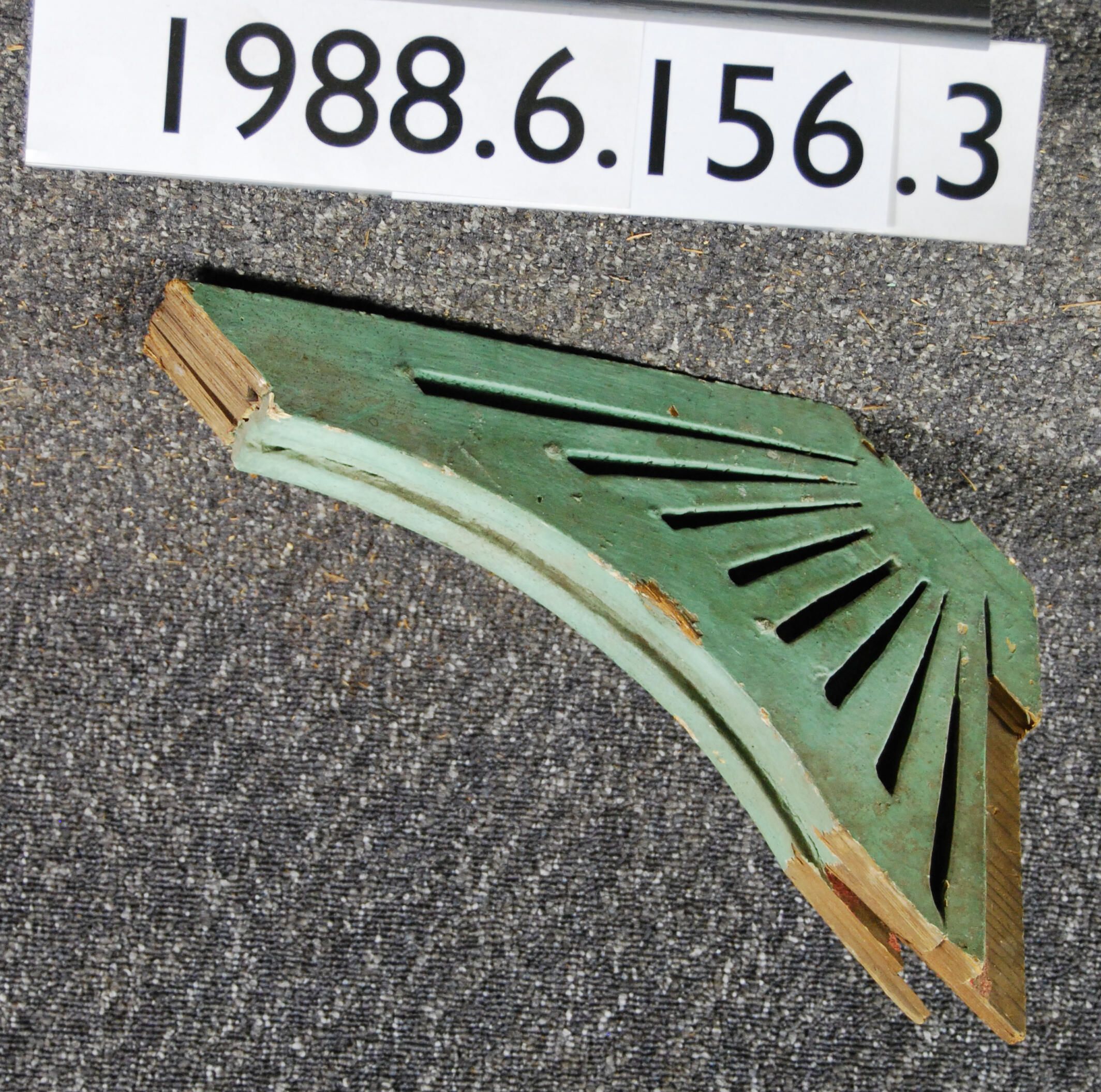 Wood bracket. Sunburst motif. Painted green. Inscriptions or Markings: Manufacturer: Place of Manufacturer: Design motif: Style: Finish: Painted