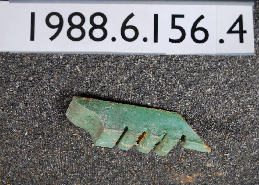 Wood bracket. Fragment. Painted green. Inscriptions or Markings: Manufacturer: Place of Manufacturer: Design motif: Style: Finish: Painted