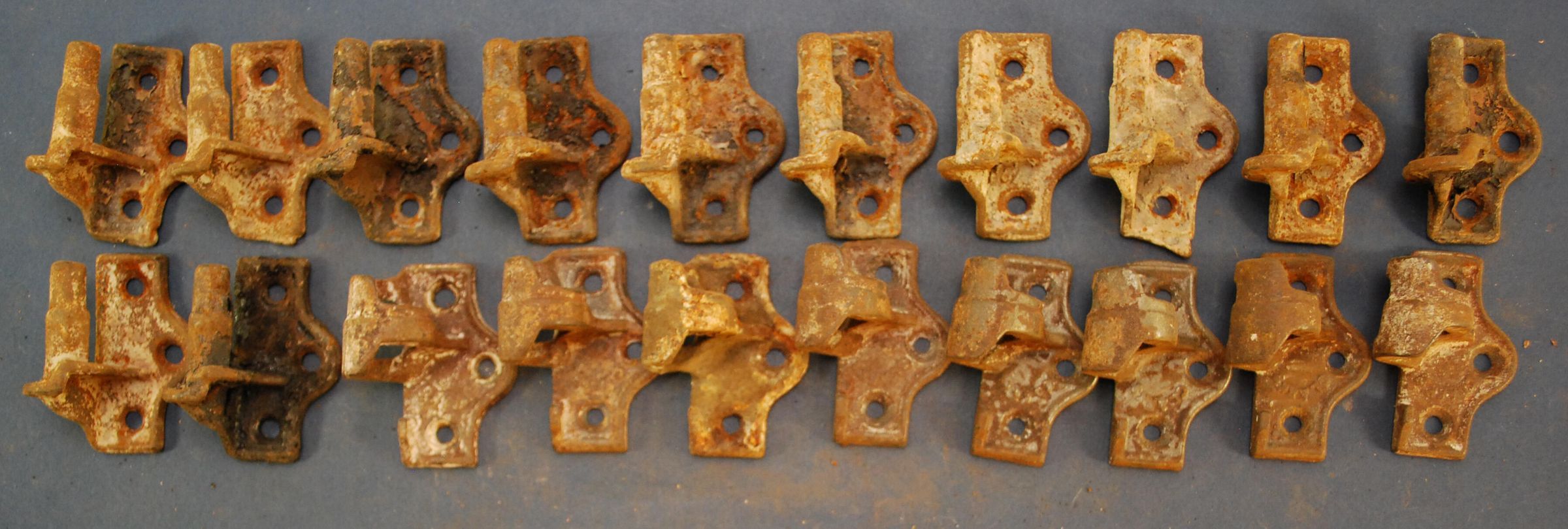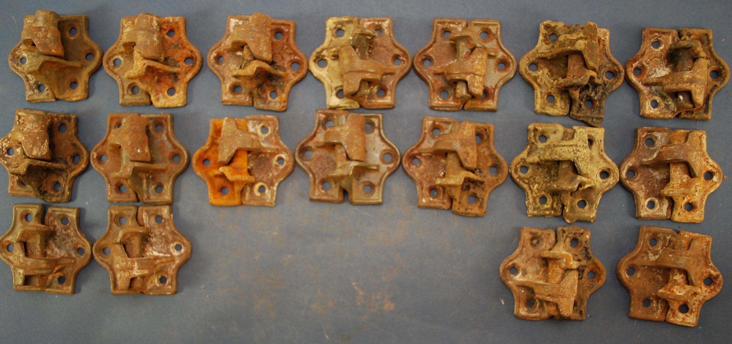 Comments: Some with Clark embossed inscription, some exposed to fire, remnants of paint. Includes twelve extra pintles and eight extra hinge leaves.Lexicon