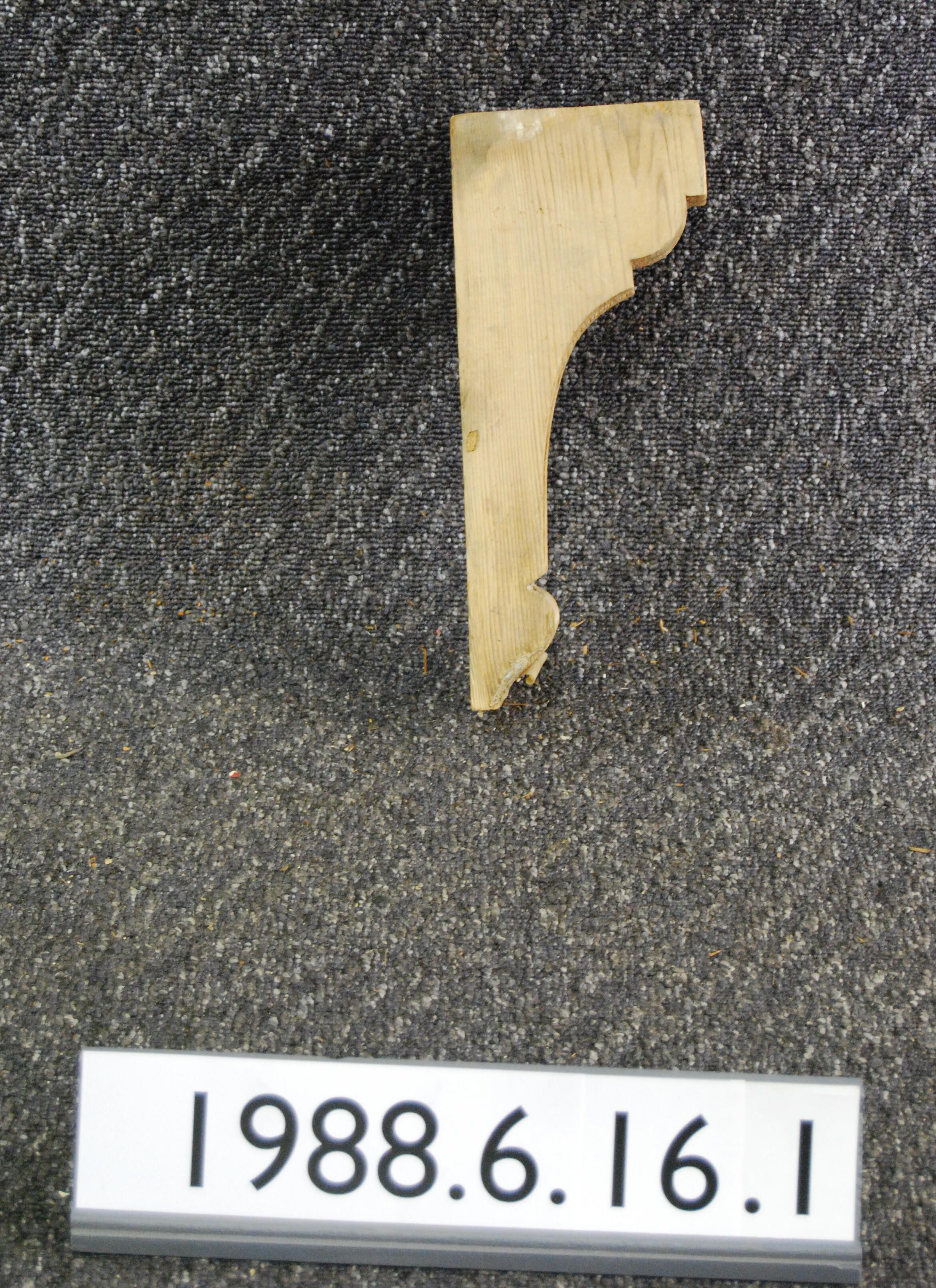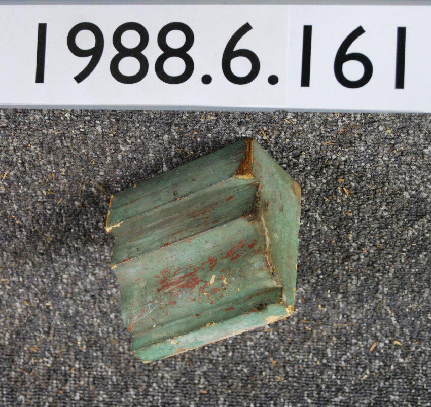Wood bracket. Compound contour Cut from single block. (Dentil). Painted green. Inscriptions or Markings: Manufacturer: Place of Manufacturer: Design motif: Style: Finish: Painted