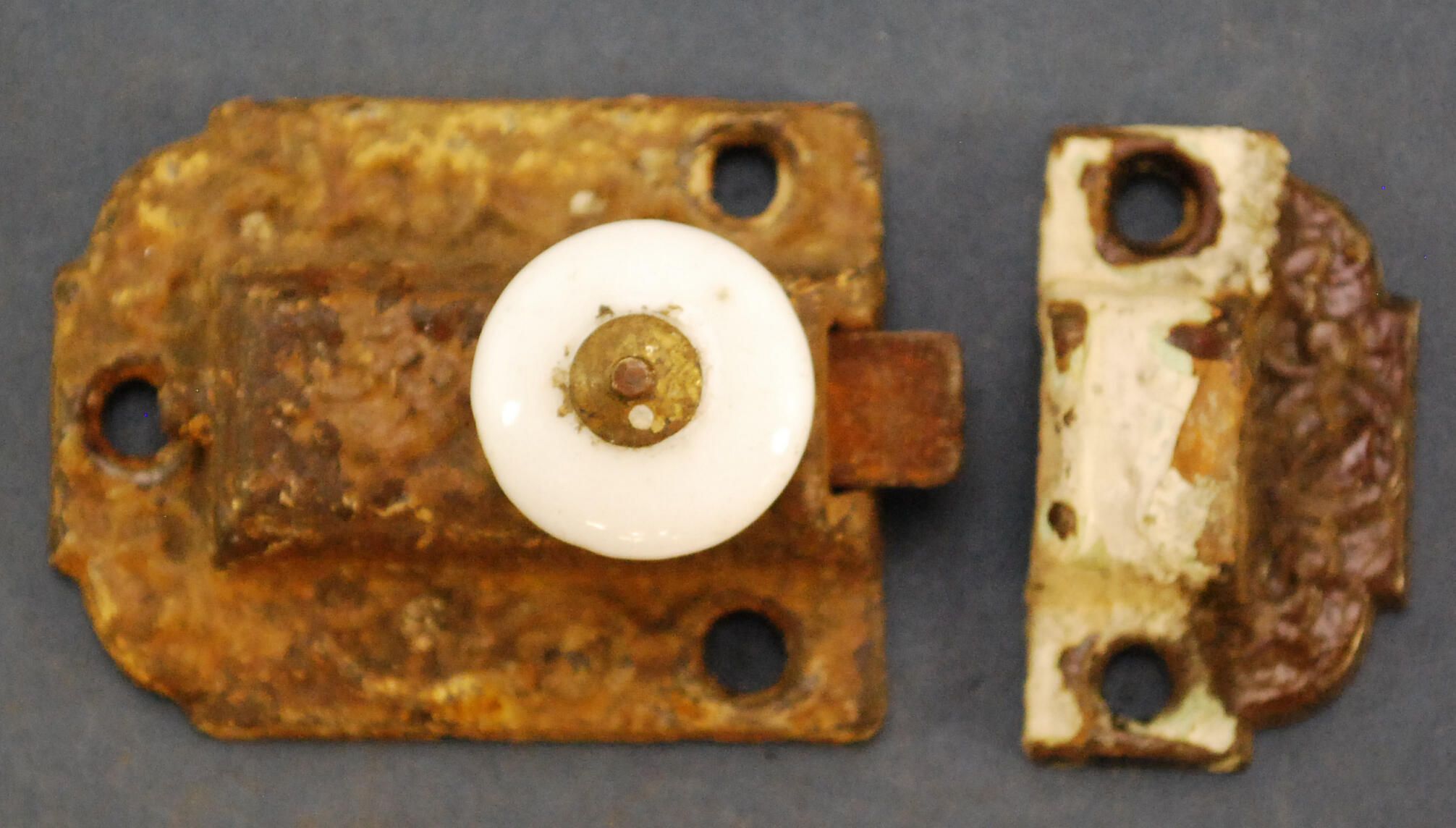 Comments: Latch and catch, some pater paint. Iron body with porcelain knob.Lexicon