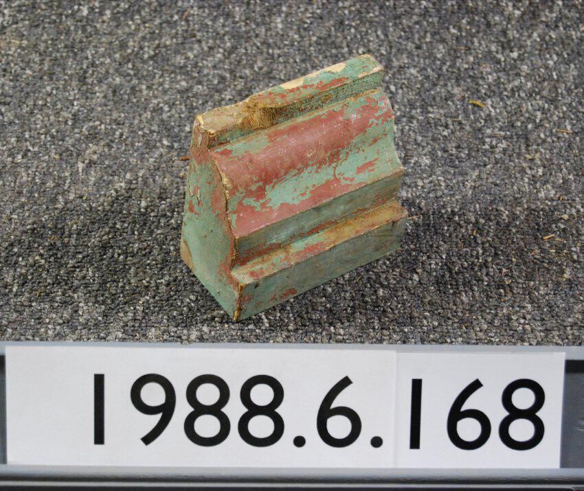 Wood bracket. Compound contour. Cut from block. (Possibly dentil variation). Inscriptions or Markings: Manufacturer: Place of Manufacturer: Design motif: Style: Finish: Painted