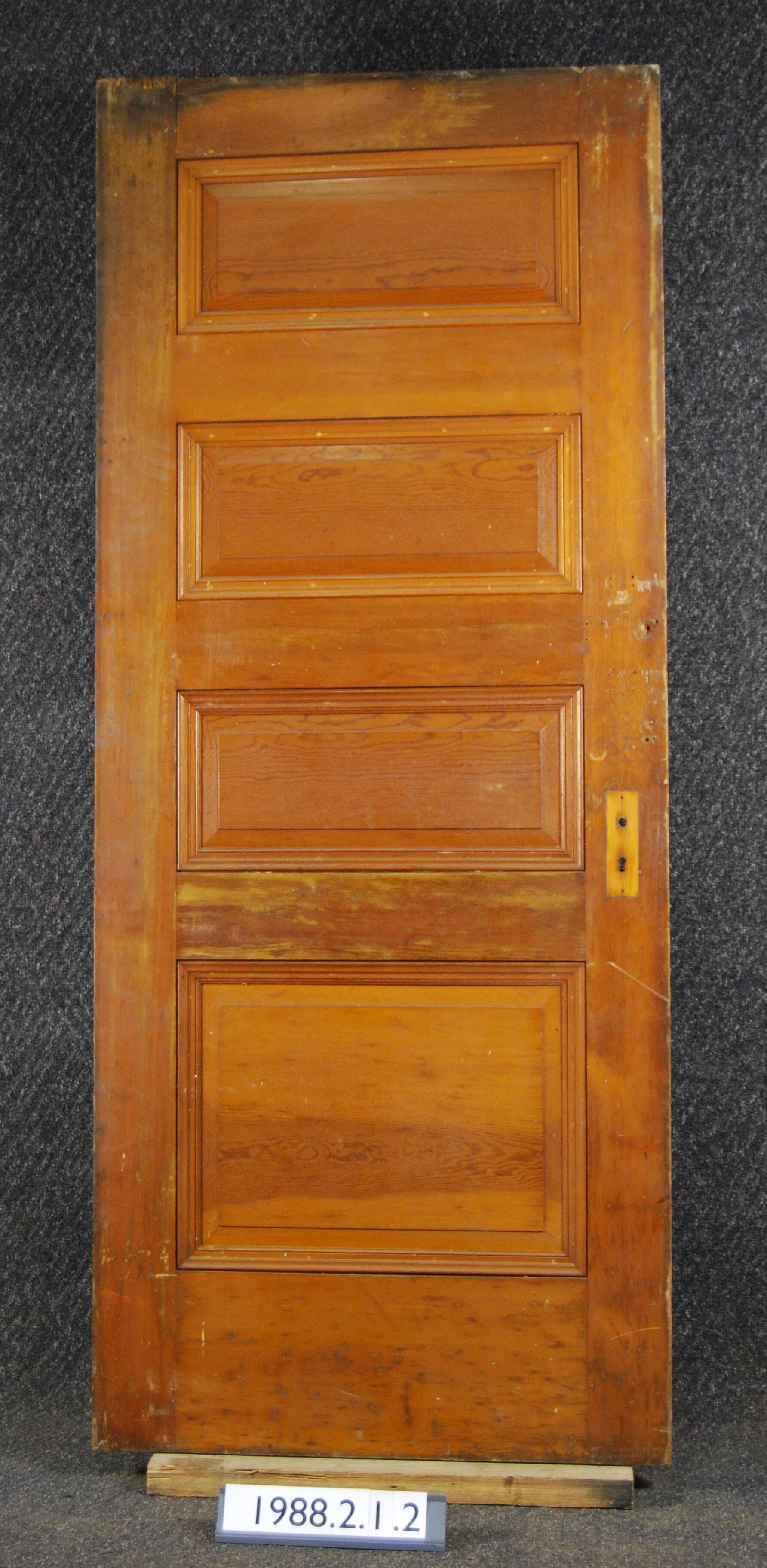 Interior door. Four panels with applied moldings. All hardware missing. From the Captain John Brown House, Portland, Oregon. Building demolished in 1973. Dry rot at top;. Mortise lock missing. Varnished.