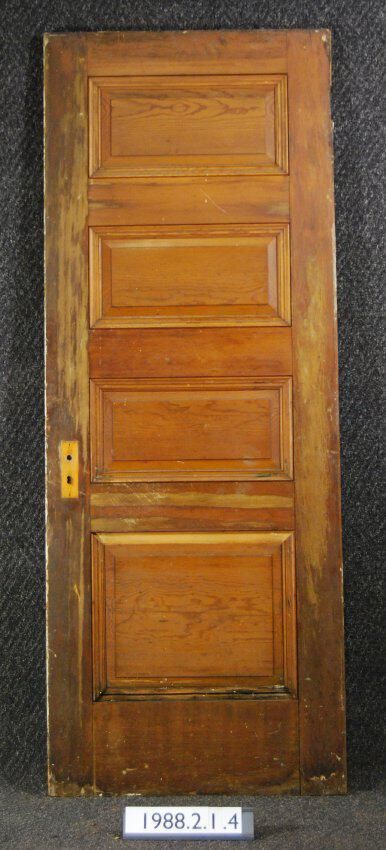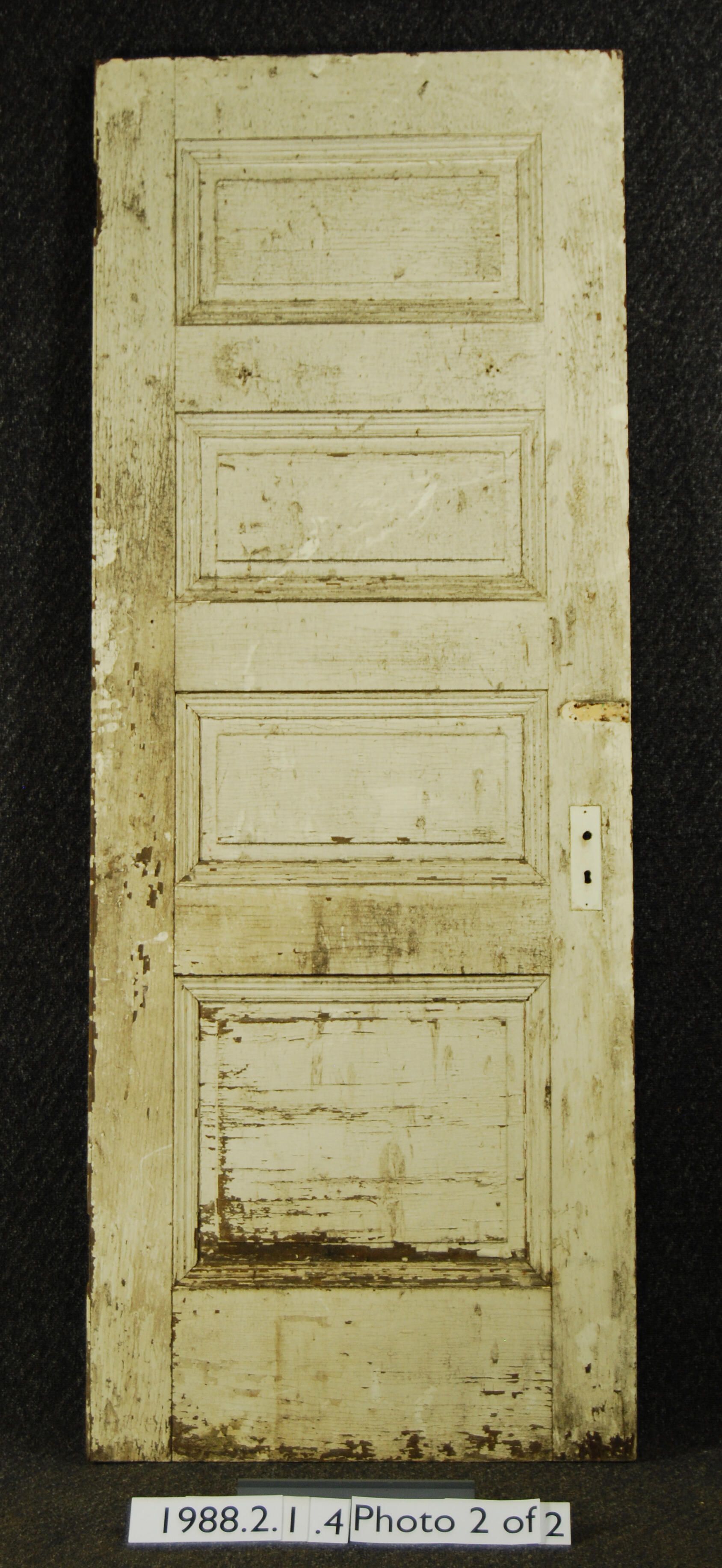Interior door. Hardware missing. Mortise lock missing. From the Captain John Brown House, Portland, Oregon. Building demolished in 1973. Varnished on one side, painted white (or very light green) on other side.