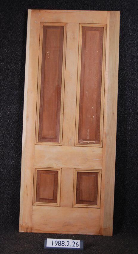 Interior door. Four panels with applied moldings. Restored / rebuilt / stripped of finish / void of hardware. Inscriptions or Markings: Manufacturer: Place of Manufacturer: Design Motif: Style: Finish: Stripped