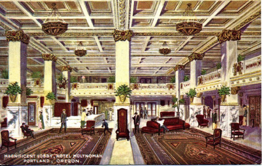 Building/location: Multnomah Hotel, Magnificent Lobby Subject Matter:Hotel Image process: Lithograph Architect: Building Description: List of Drawings in set: