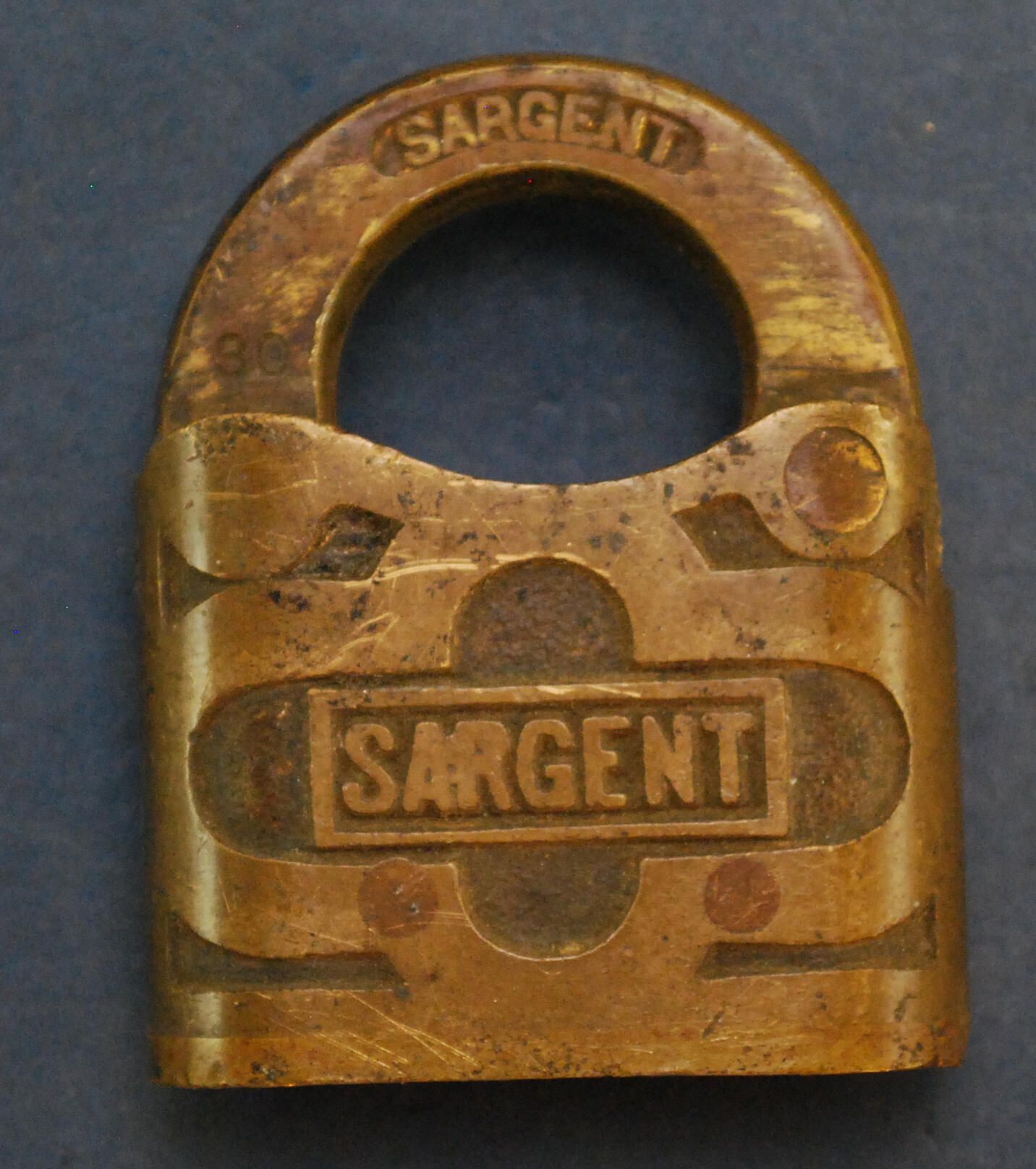 Design Name: Manufacturer: Sargent Style: Material: Brass Manufacturing Method: Cast Surface Finish: Aged / Unpolished VDA Classification: VDA Number: Shape: Patent Specifics: Lock Type (If Applicable): Inscription/Makers Mark: Sargent Inscription Text: New Haven, Conn. U.S.A. Comments:
