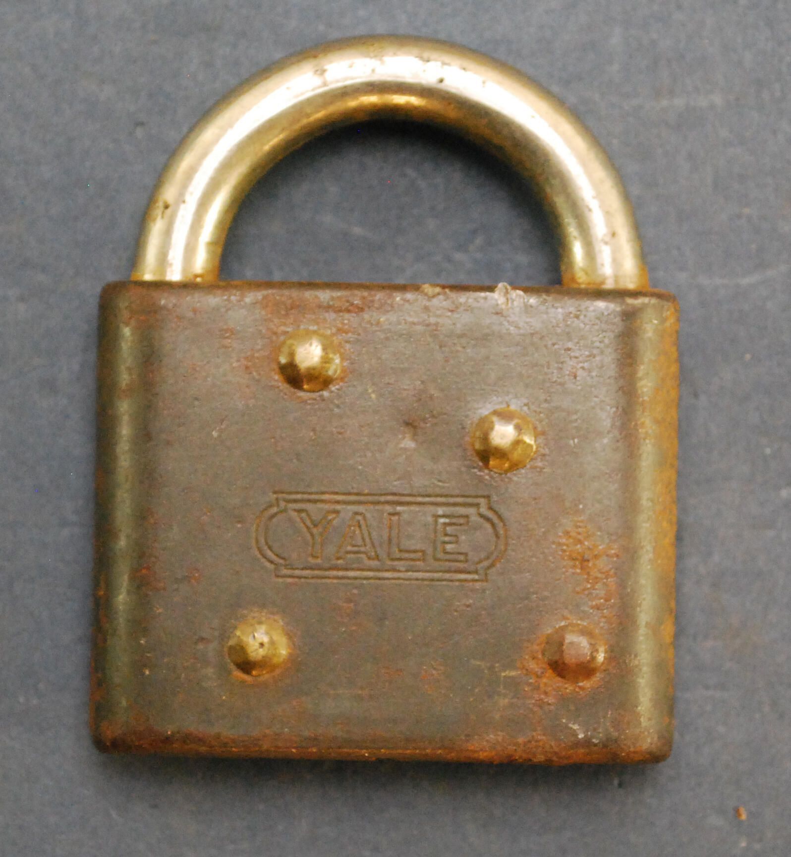 Design Name: Manufacturer: Yale & Towne Mfg. Co. Style: Material: Steel Manufacturing Method: Wrought / Stamped Surface Finish: Iron Oxide VDA Classification: VDA Number: Shape: Patent Specifics: Lock Type (If Applicable): Inscription/Makers Mark: Yale Inscription Text: Public Service Co. of Northern Ill. Comments: