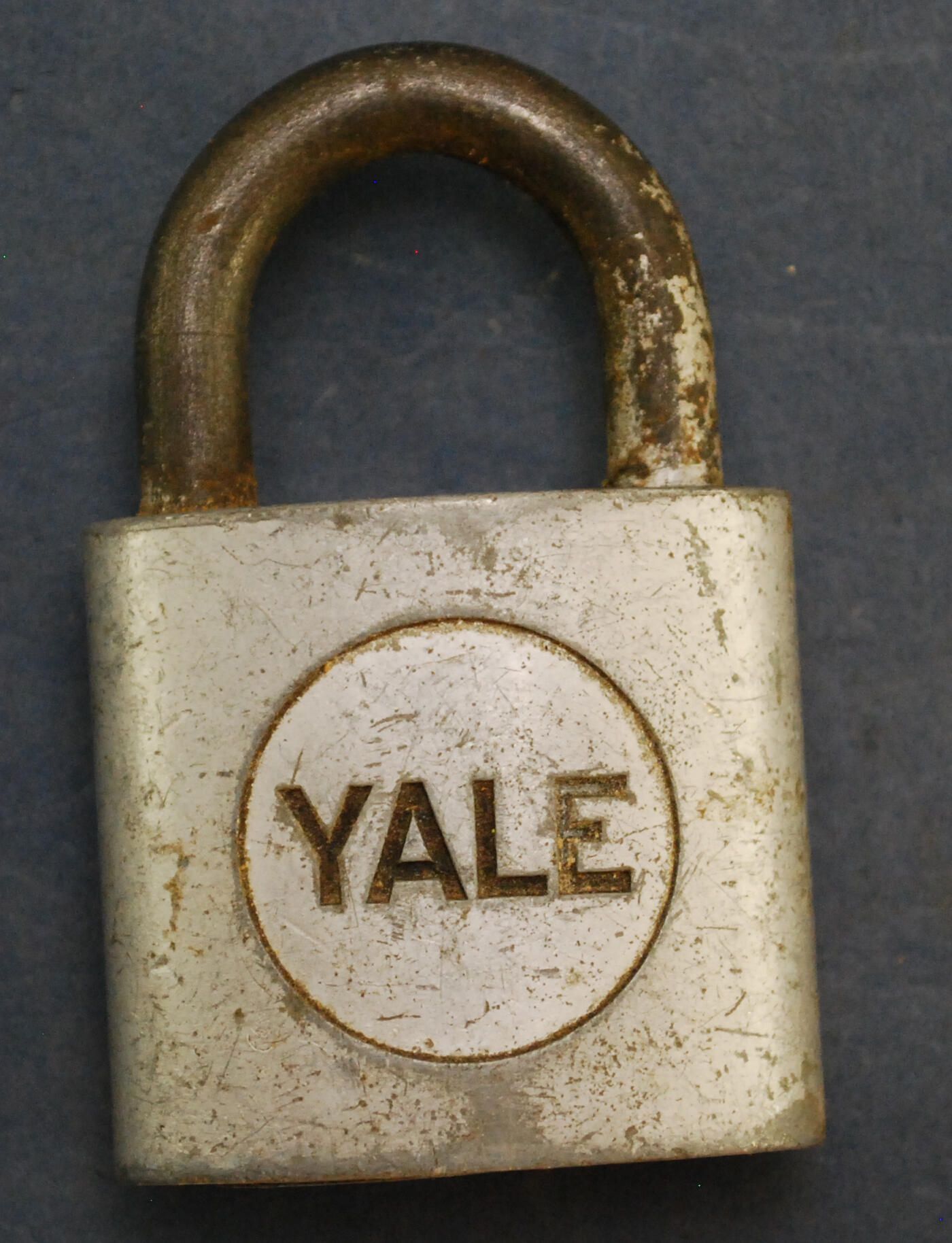 Design Name: Manufacturer: Yale & Towne Mfg. Co. Style: Material: Zinc / Steel Manufacturing Method: Cast / Wrought Surface Finish: Painted VDA Classification: VDA Number: Shape: Patent Specifics: Lock Type (If Applicable): Inscription/Makers Mark: Inscription Text: Yale Comments: