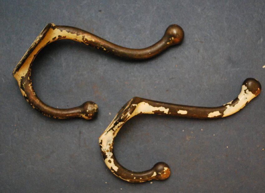 Design Name: Manufacturer: Unknown Style: Material: Iron Manufacturing Method: Cast Surface Finish: Plated / Painted VDA Classification: VDA Number: Shape: Patent Specifics: Lock Type (If Applicable): Inscription/Makers Mark: Inscription Text: Comments: Similar in shape but not matched, remnants of plating on one.