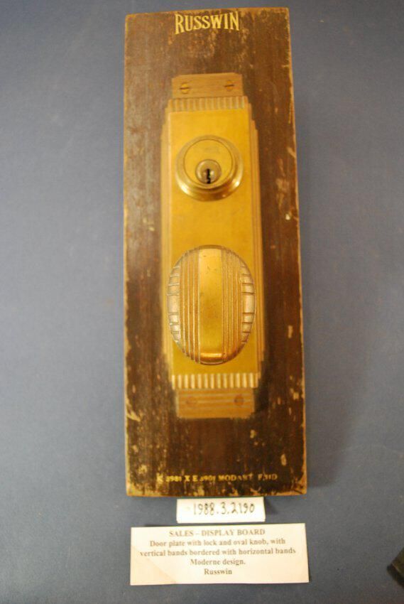 Comments: Not found in VDA catalog. Door knob, escutcheon plate, and cylinder lock mounted on board.Lexicon