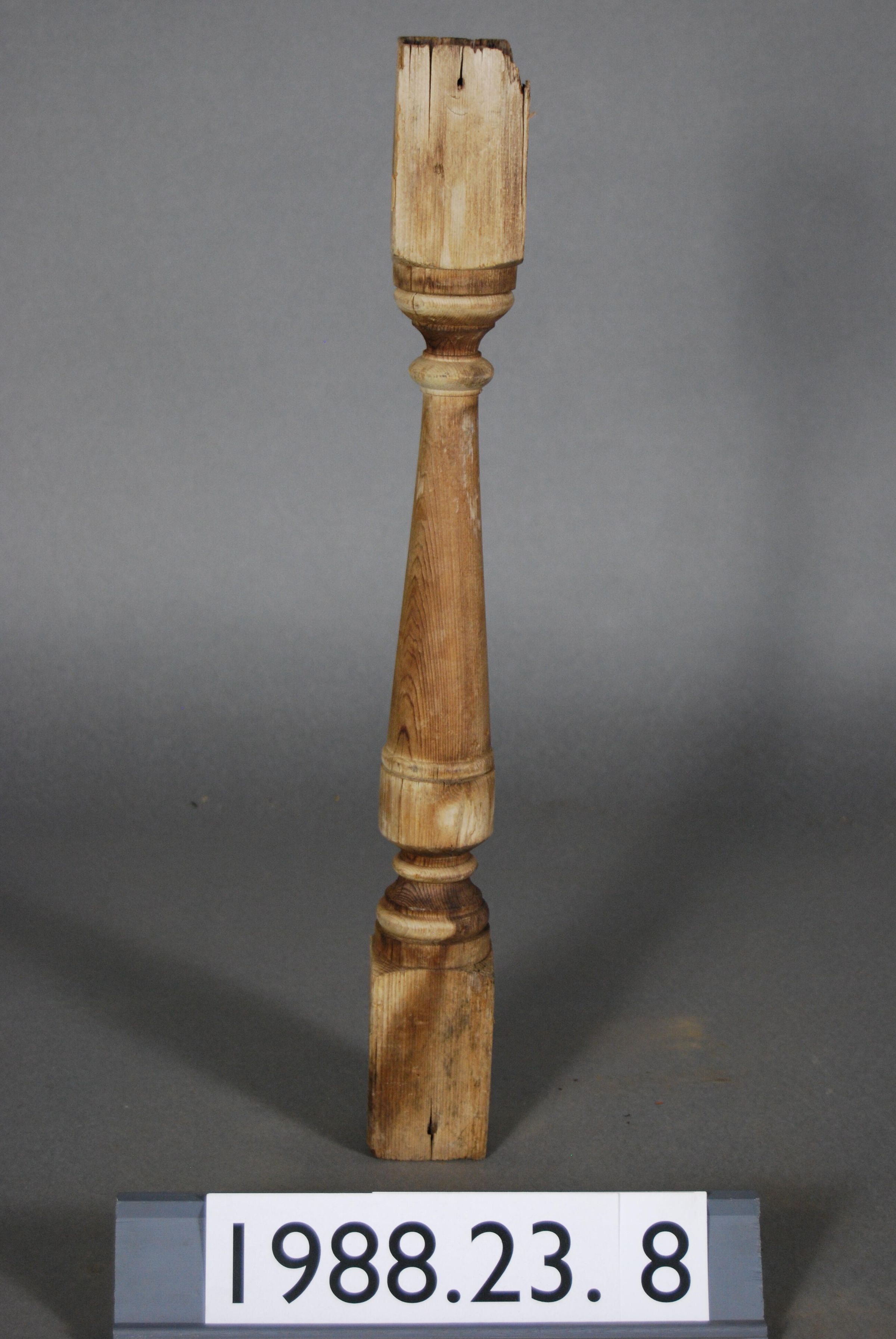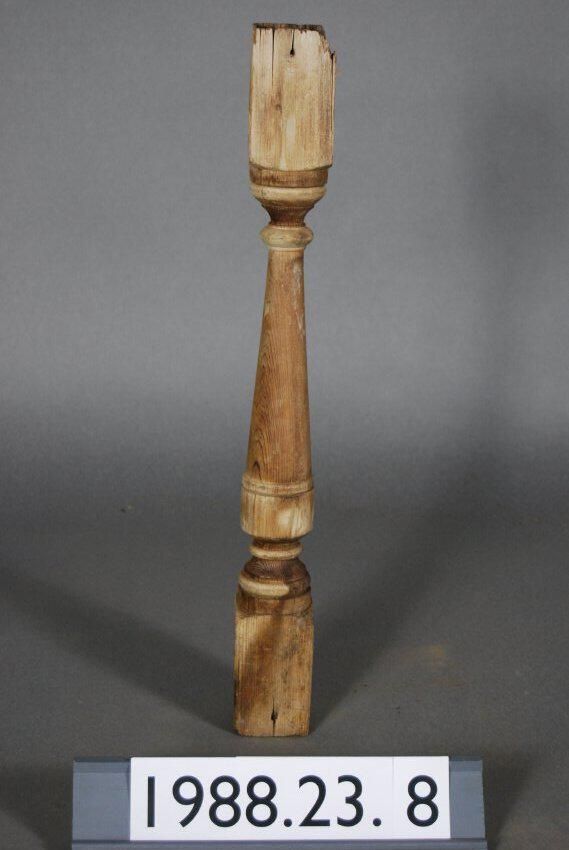 Exterior wood baluster. Turned. Stripped of paint. Manufacturer: Place of Manufacturer: Design motif: Style: Finish: Stripped