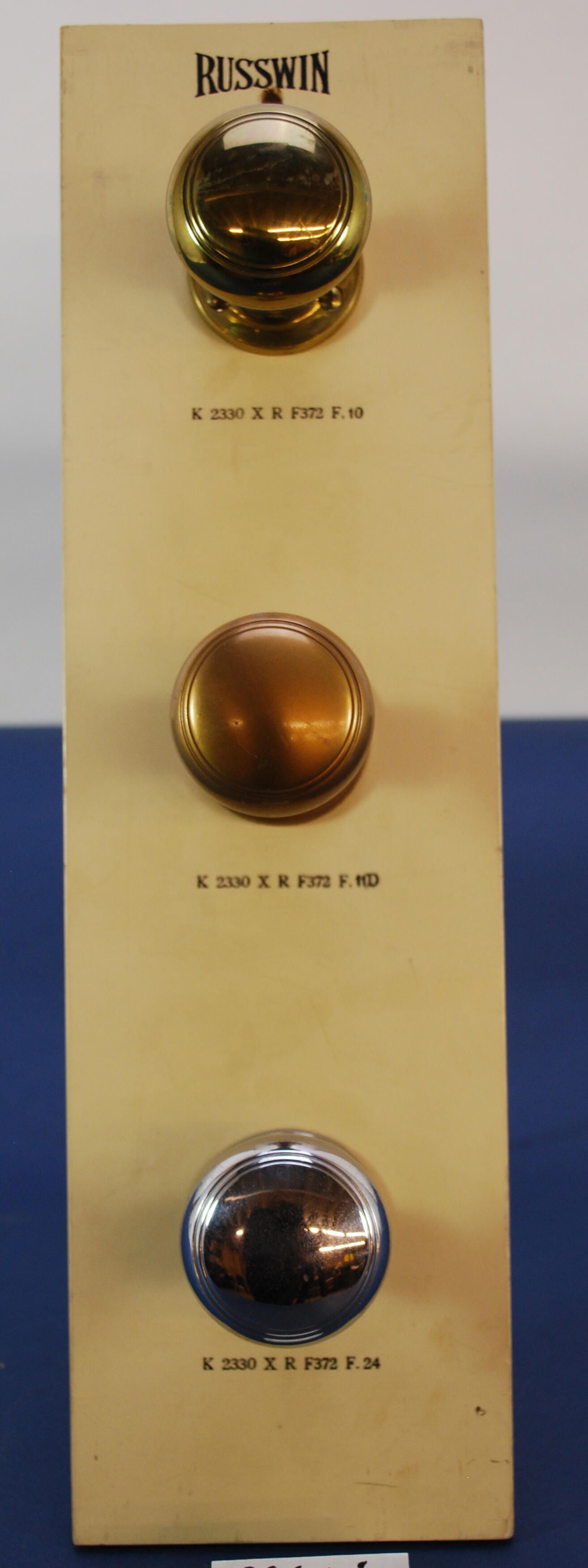 Comments: Russwin three knobs display board; salesmen's samples includes three roses.Lexicon
