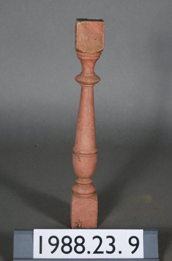 Exterior wood baluster. Turned. Painted pink. Manufacturer: Place of Manufacturer: Design motif: Style: Finish: Painted