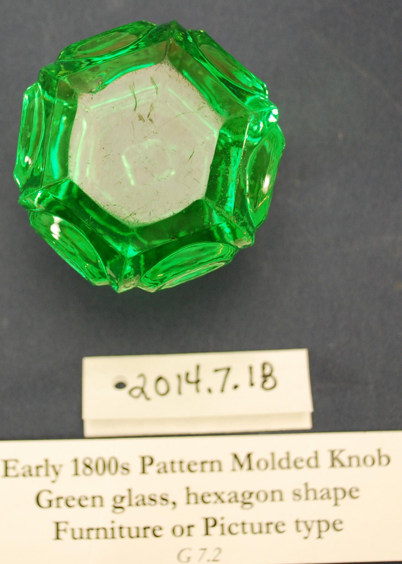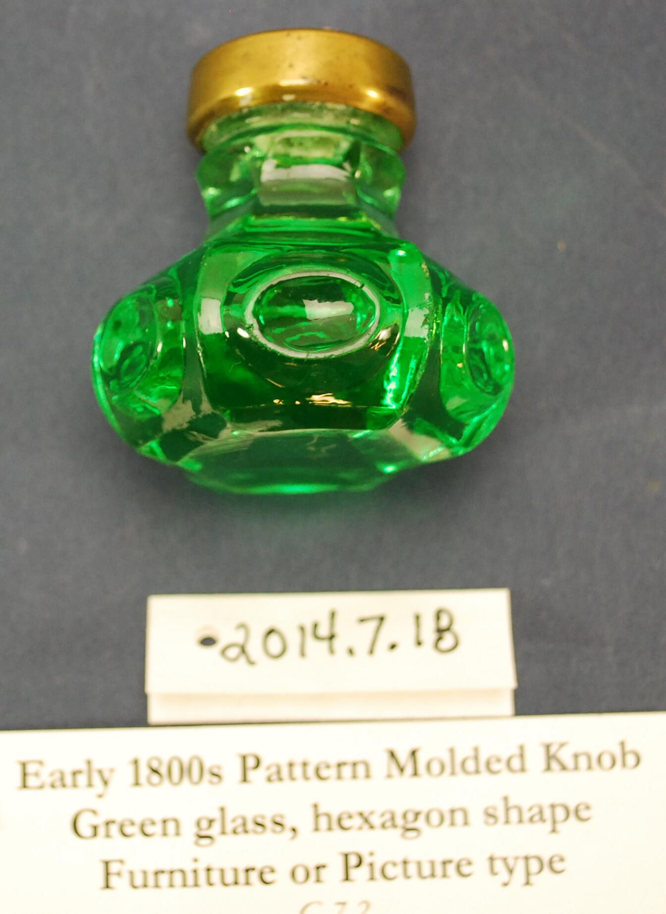 Comments: Green glass. "Punty" design. Fitted for drawer pull.