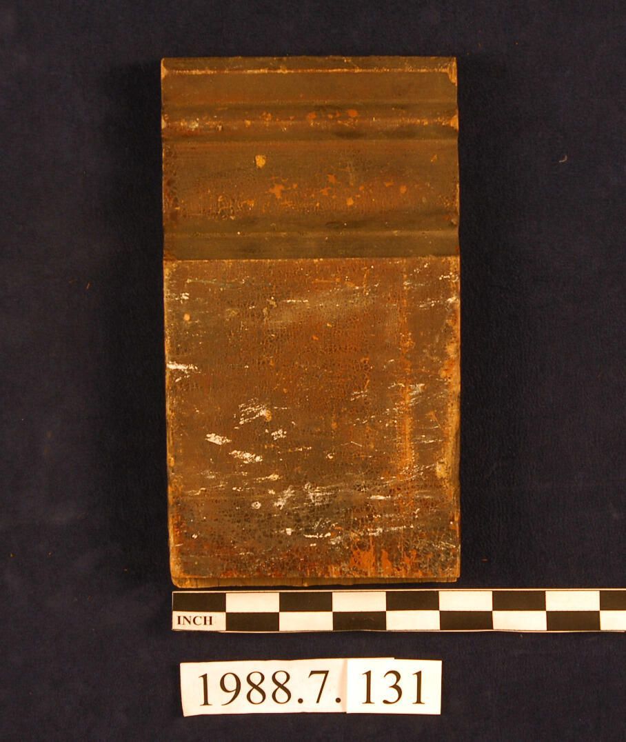 Rectangular corner block. Compound molding profile near top. Plain base. Unidentified wood. Painted. Inscriptions or Markings: Manufacturer: Place of Manufacturer: Design motif: Style: Finish: Painted.