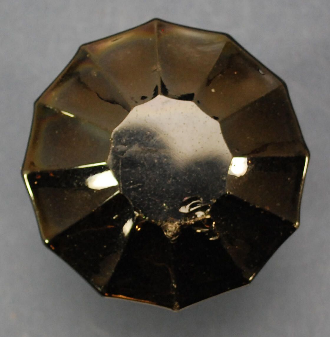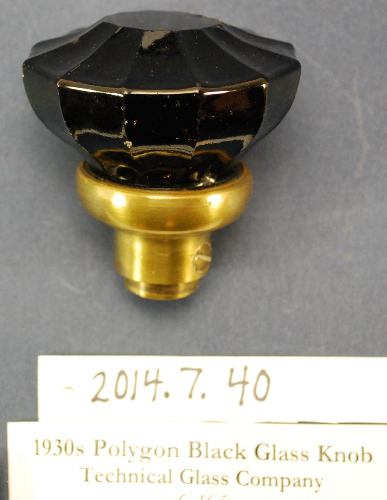 Design Name: Manufacturer: Technical Glass Co. Style: Material: Black Glass / Brass Manufacturing Method: Pressed / Polished Face Surface Finish: VDA Classification: Glass VDA Number: Z Shape: Fluted Patent Specifics: Lock Type (If Applicable): Inscription/Makers Mark: Inscription Text: Comments: Opaque black glass (chipped face).